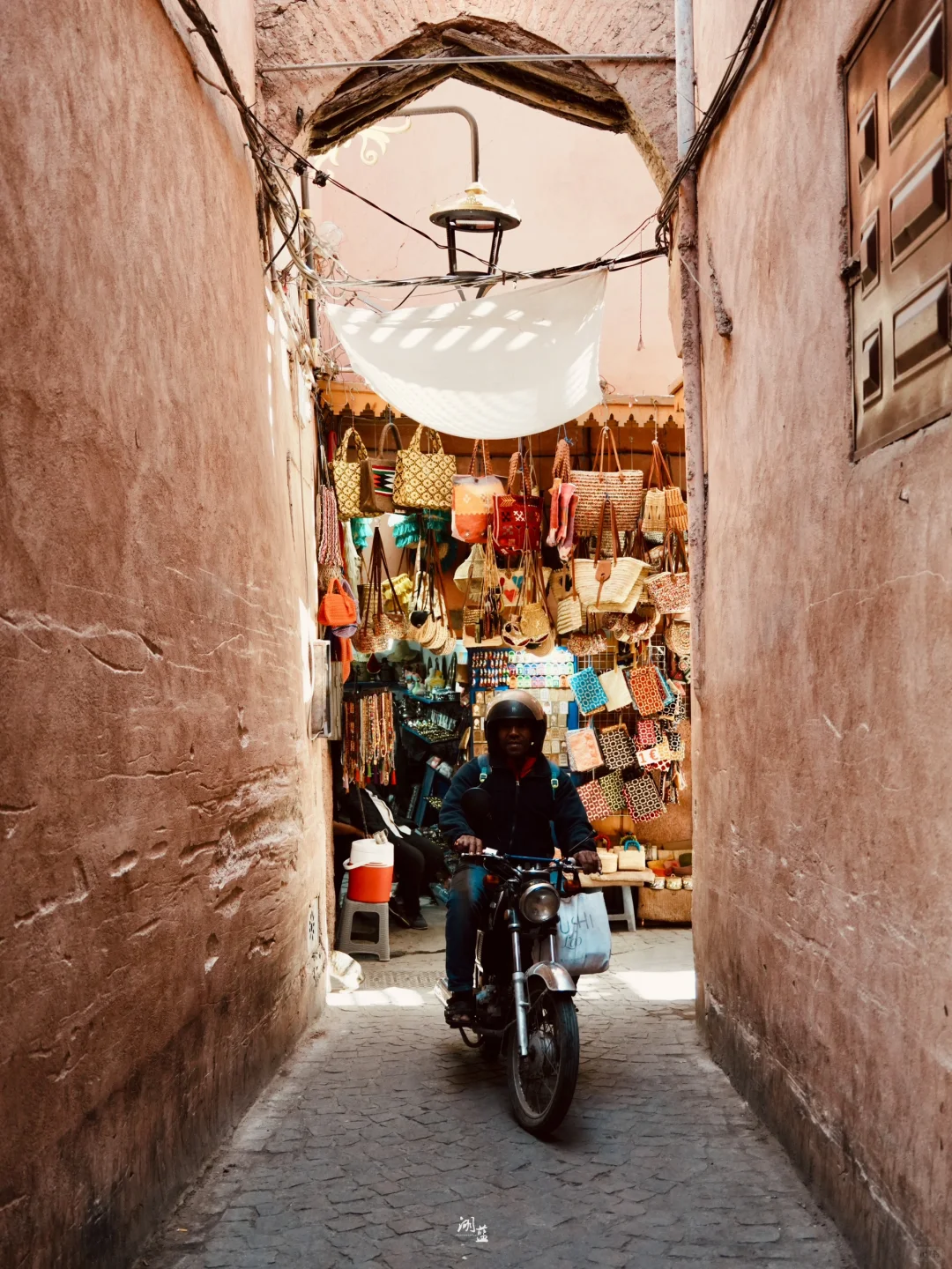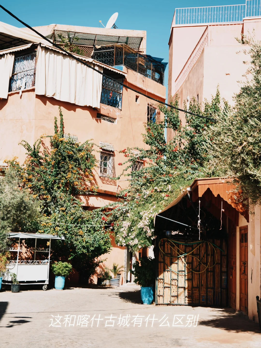 走在摩洛哥的红色之城马拉喀什,有时候真的怀疑自己好像没出国,土黄色的泥墙,相似的巴扎集市,🕌,彩色的门窗,原来马拉喀什=马车把我拉到了喀什。