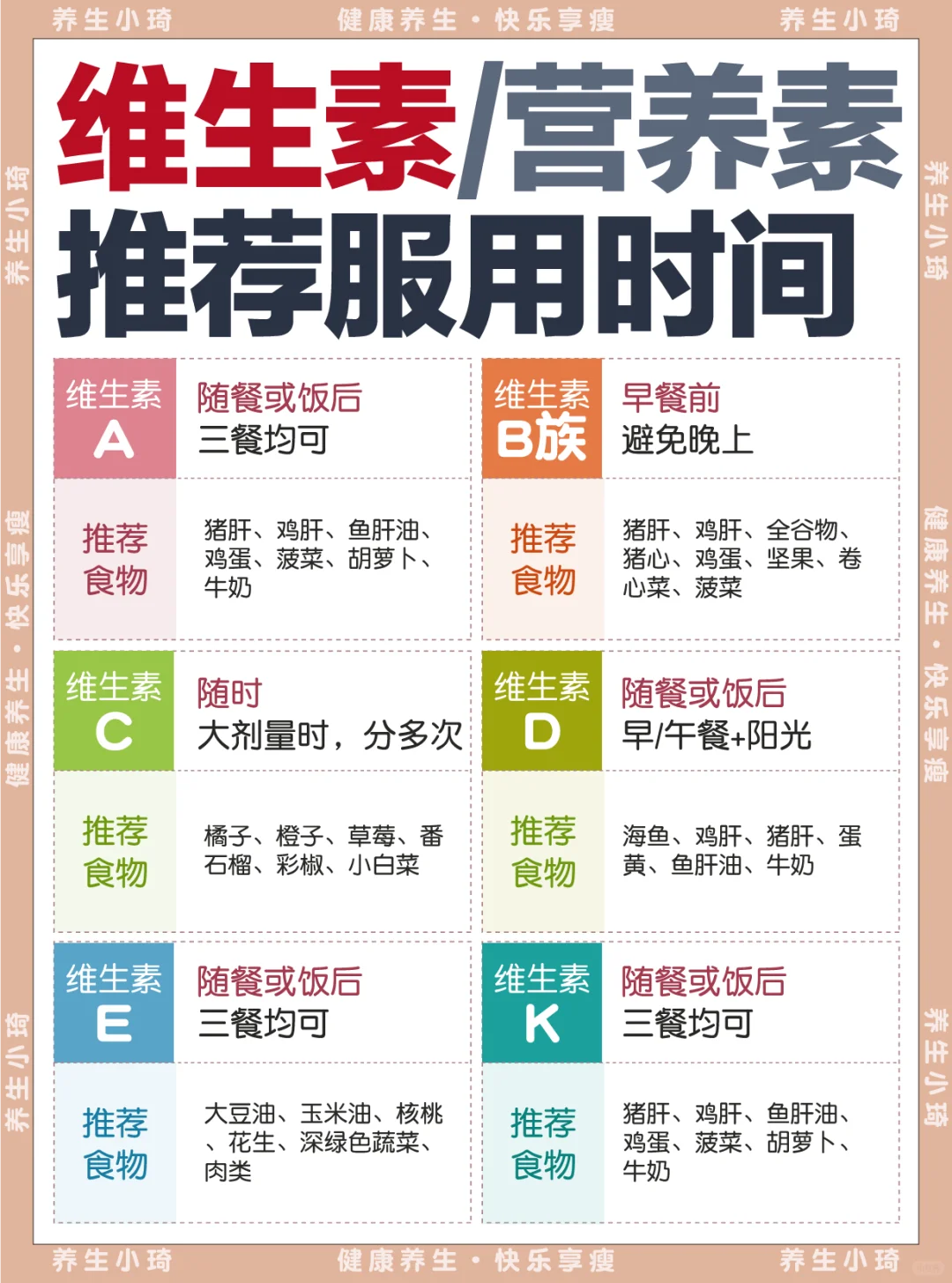 哈喽,宝子们!今天来给大家讲一讲维生素服用时间这个超实用的知识点,一张图就能让你清晰明了🧐
