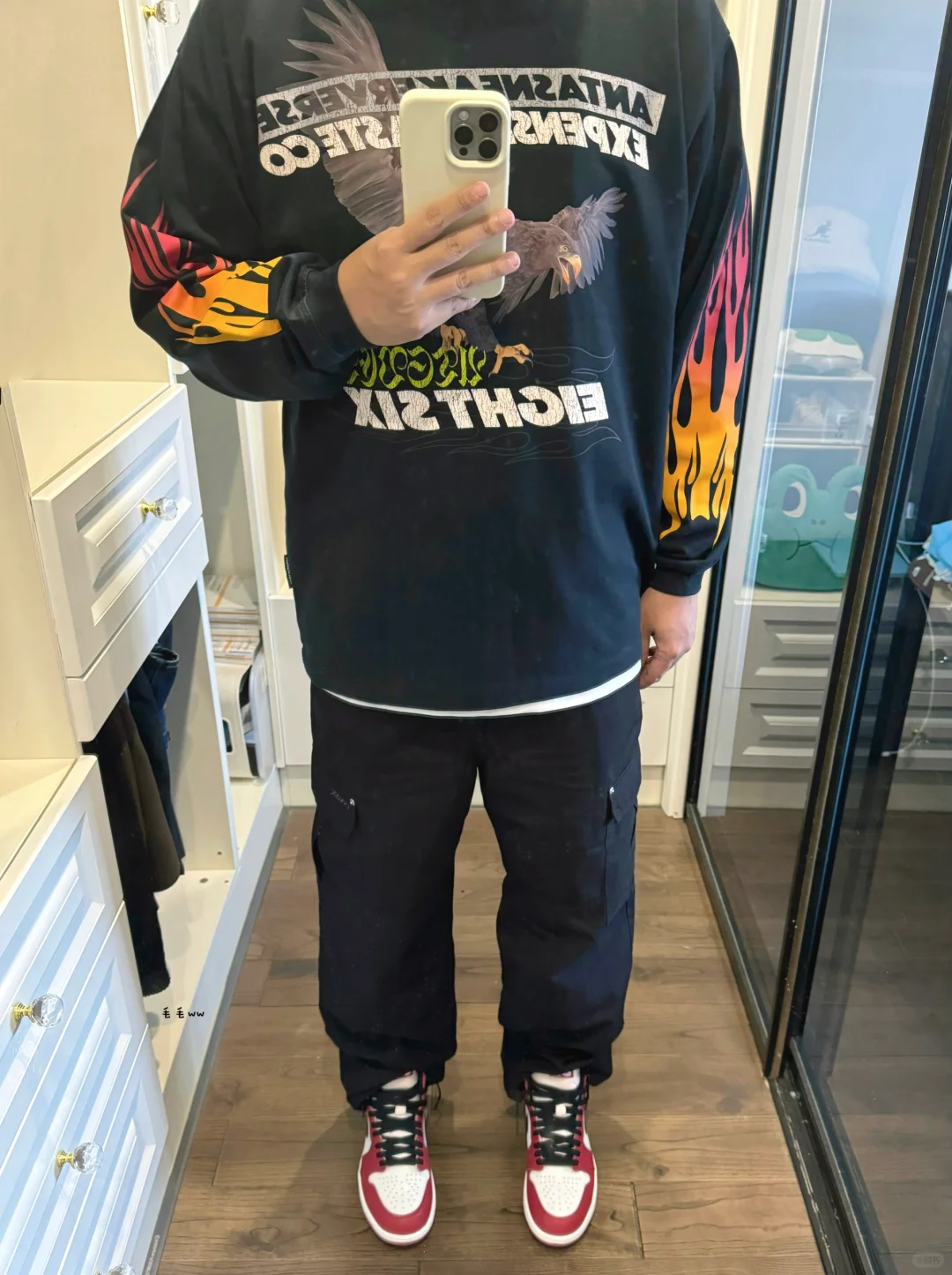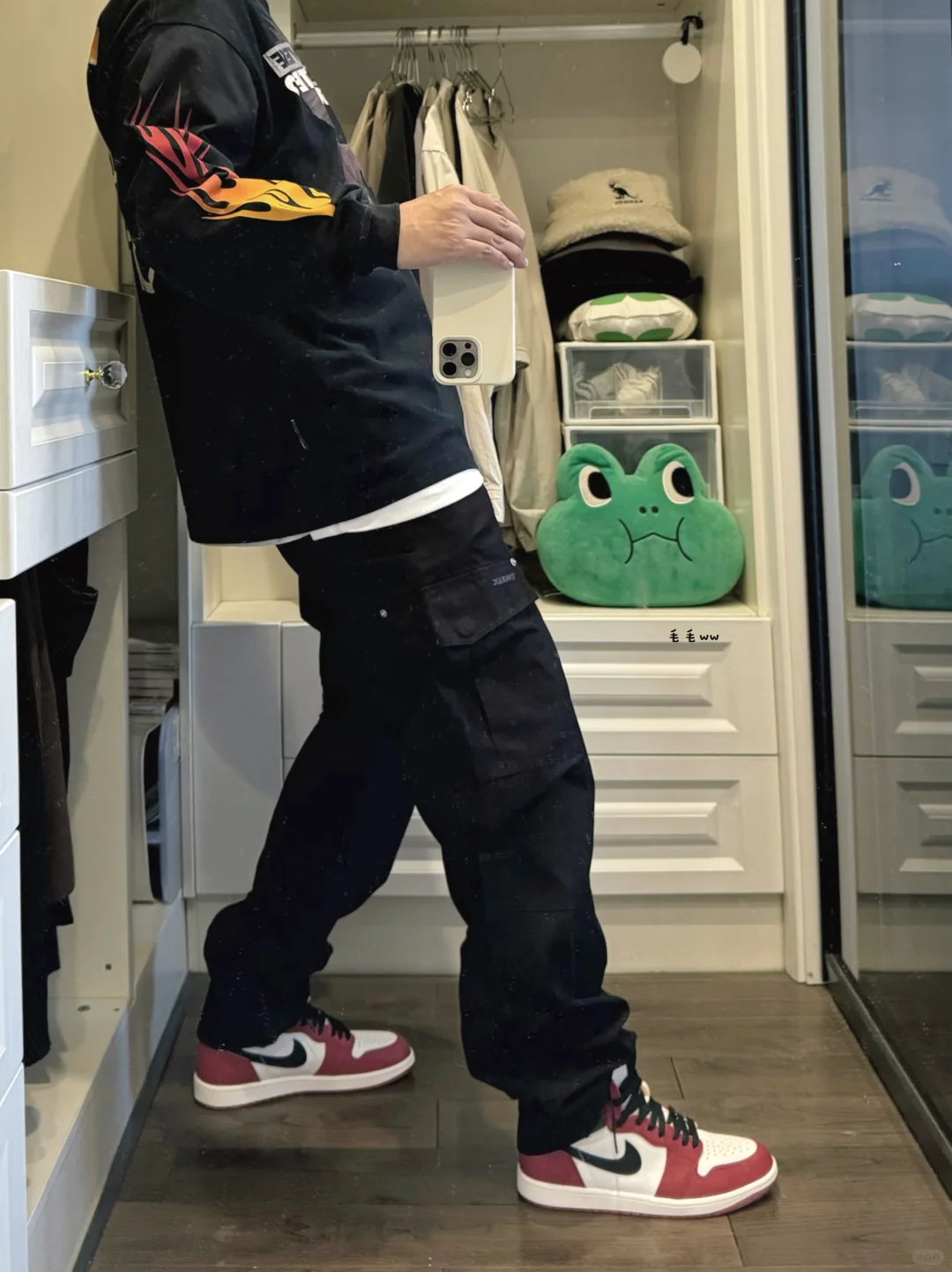 -黑色系穿搭,工装裤不挑鞋型,算是百搭的裤装,球鞋户外鞋高低帮都能穿 . -常规直筒版型,两侧口袋既实用辨识度又高,腰部可调节省略了皮带的部分 . —————— . ✏️本人178cm75kg 球鞋尺码265mm(正常EU42) . 💭以上均为我个人观点,不喜勿喷,欢迎讨论