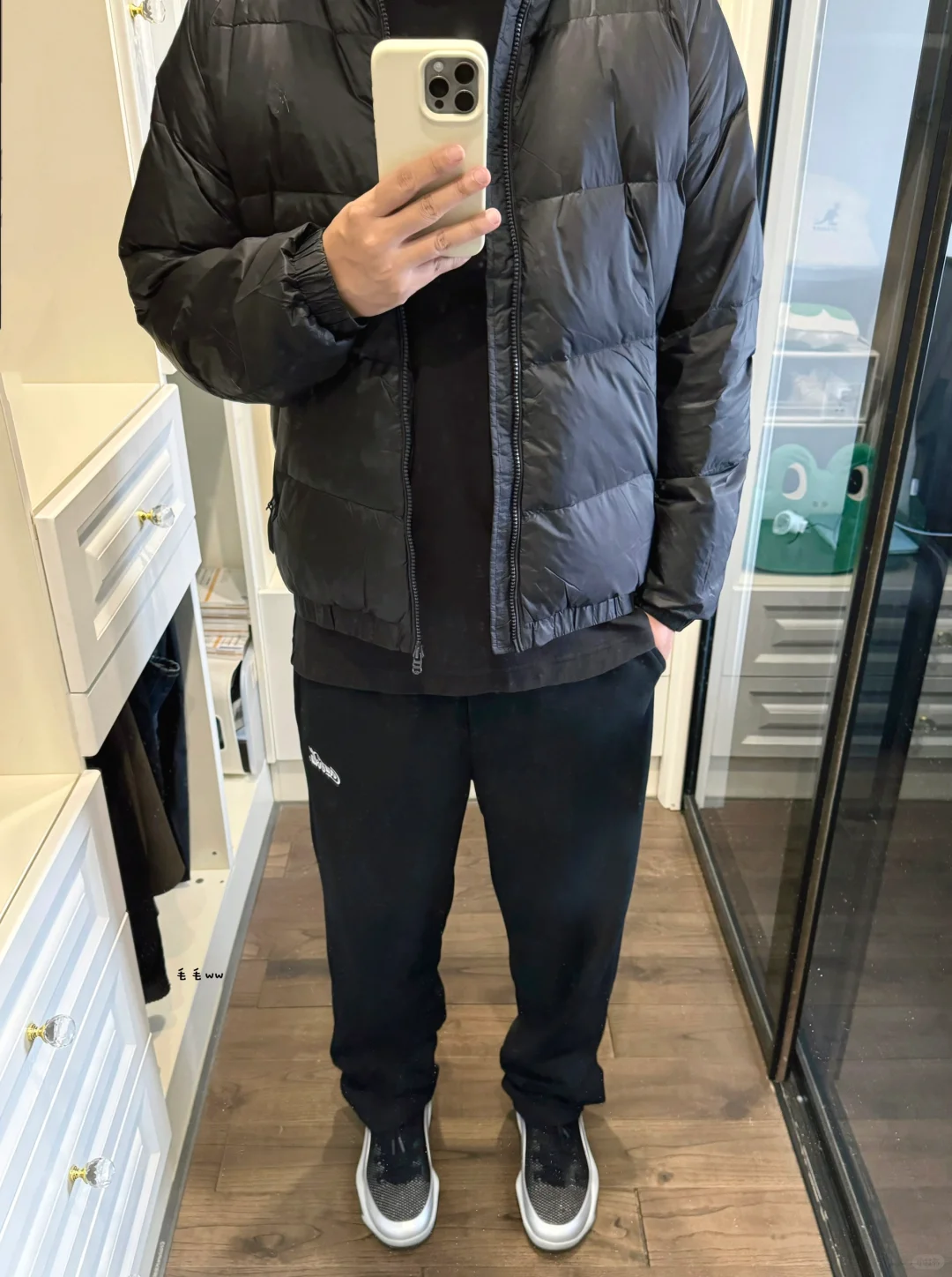 -羽绒服穿搭,显瘦尤为重要,避免内搭过于臃肿,可以选择这类轻羽绒 . -整体all black,全黑色系真是显高显瘦的首选,90%鹅绒既轻盈又保暖 . —————— . ✏️本人178cm75kg 球鞋尺码265mm(正常EU42) . 💭以上均为我个人观点,不喜勿喷,欢迎讨论。