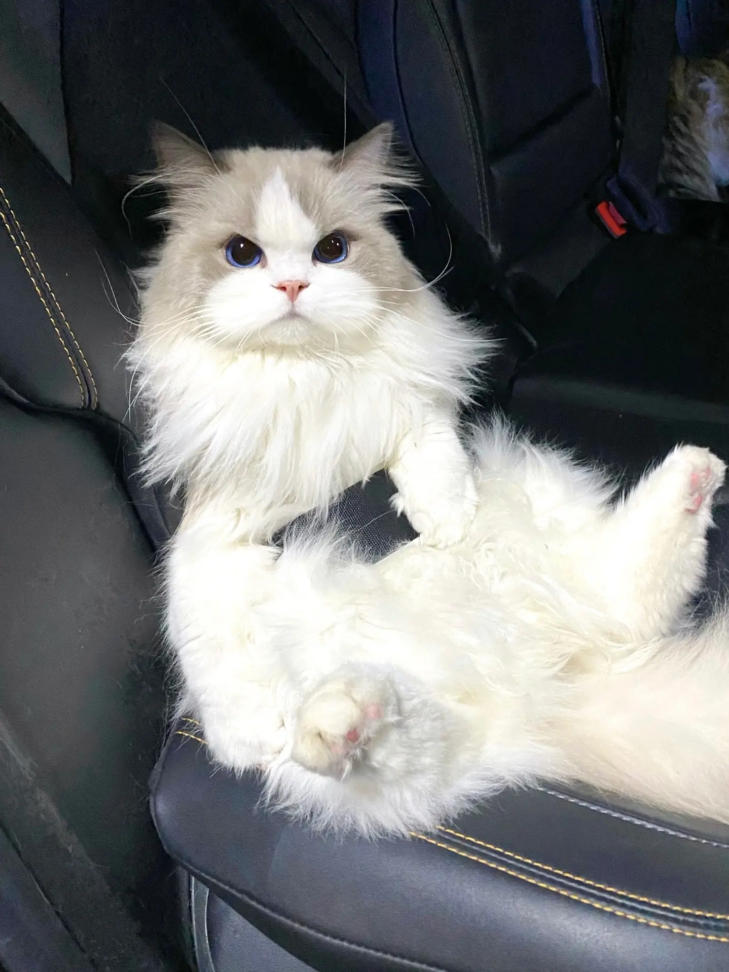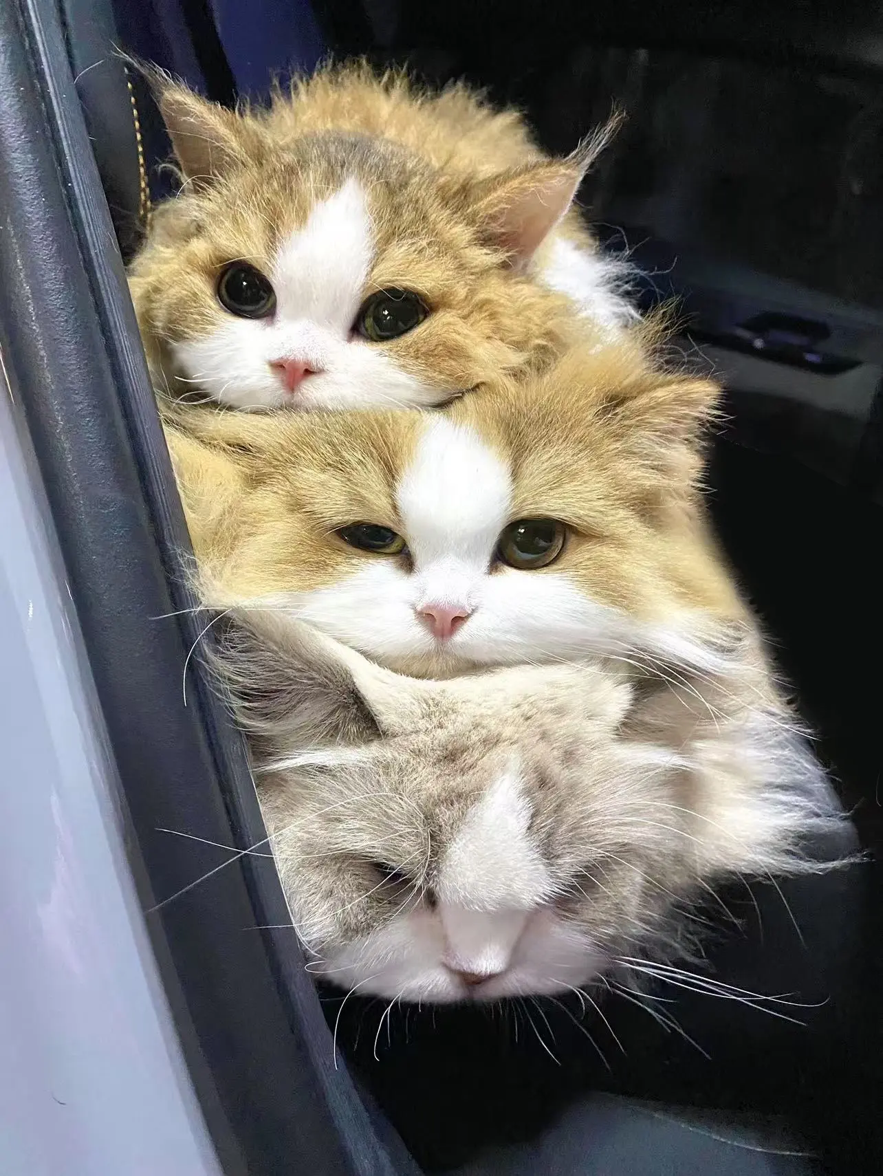 没想到吧在车里也能叠猫猫诶。奶米:别废话!快上车