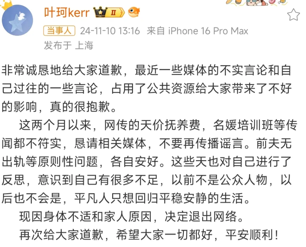 所以,叶珂宣布退网,这或许是一个最好的选择!