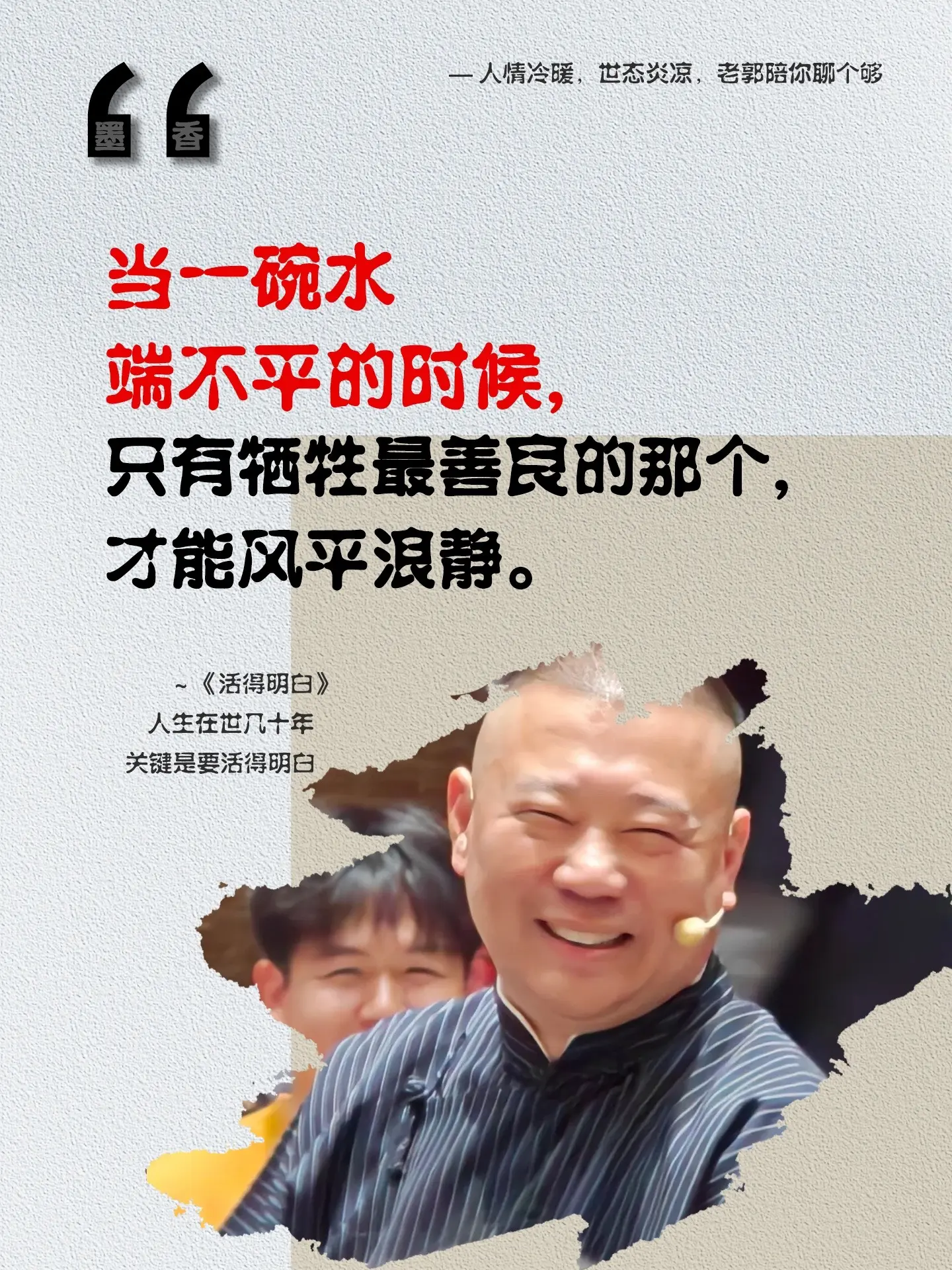 郭德纲说:当一碗水端不平的时候,只有牺牲最善良的那个,才能风不浪静;人...