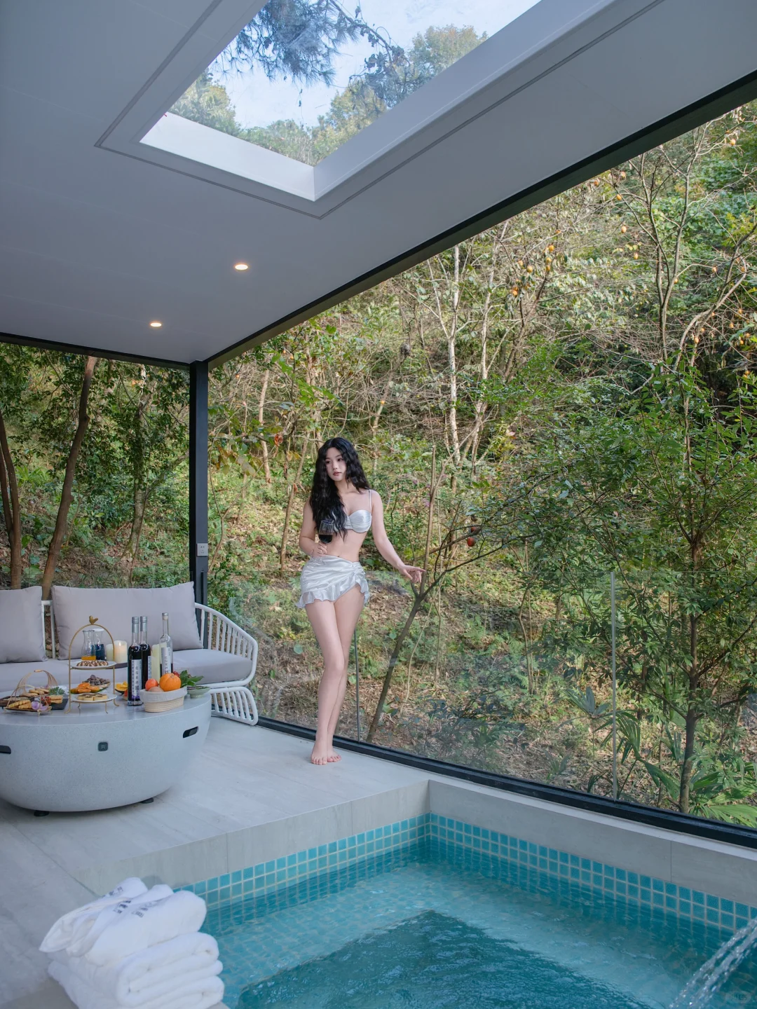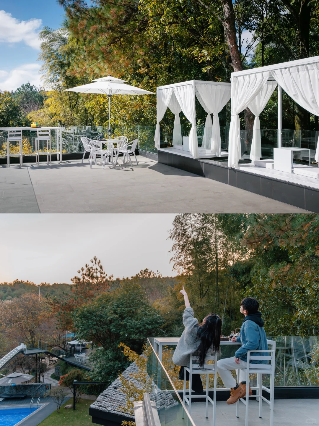 ▪️听涛是前后双露台的设计,后露台可以泡私汤,放满一池子源于地下500米的深层山泉水,设计得好看📷拍照泡温泉都不在话下