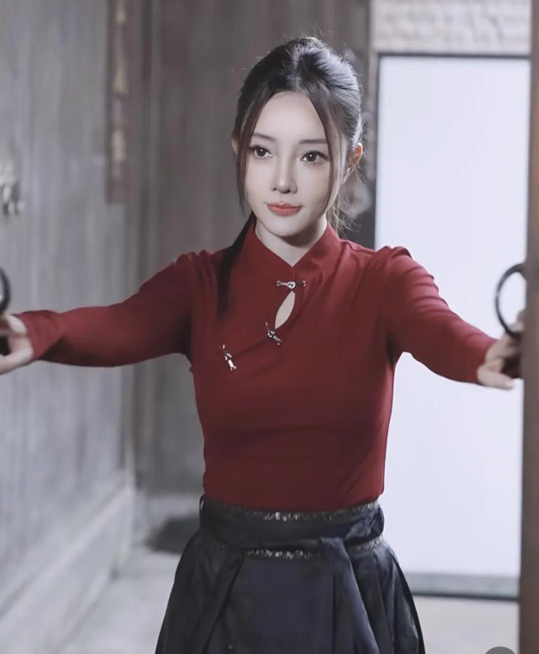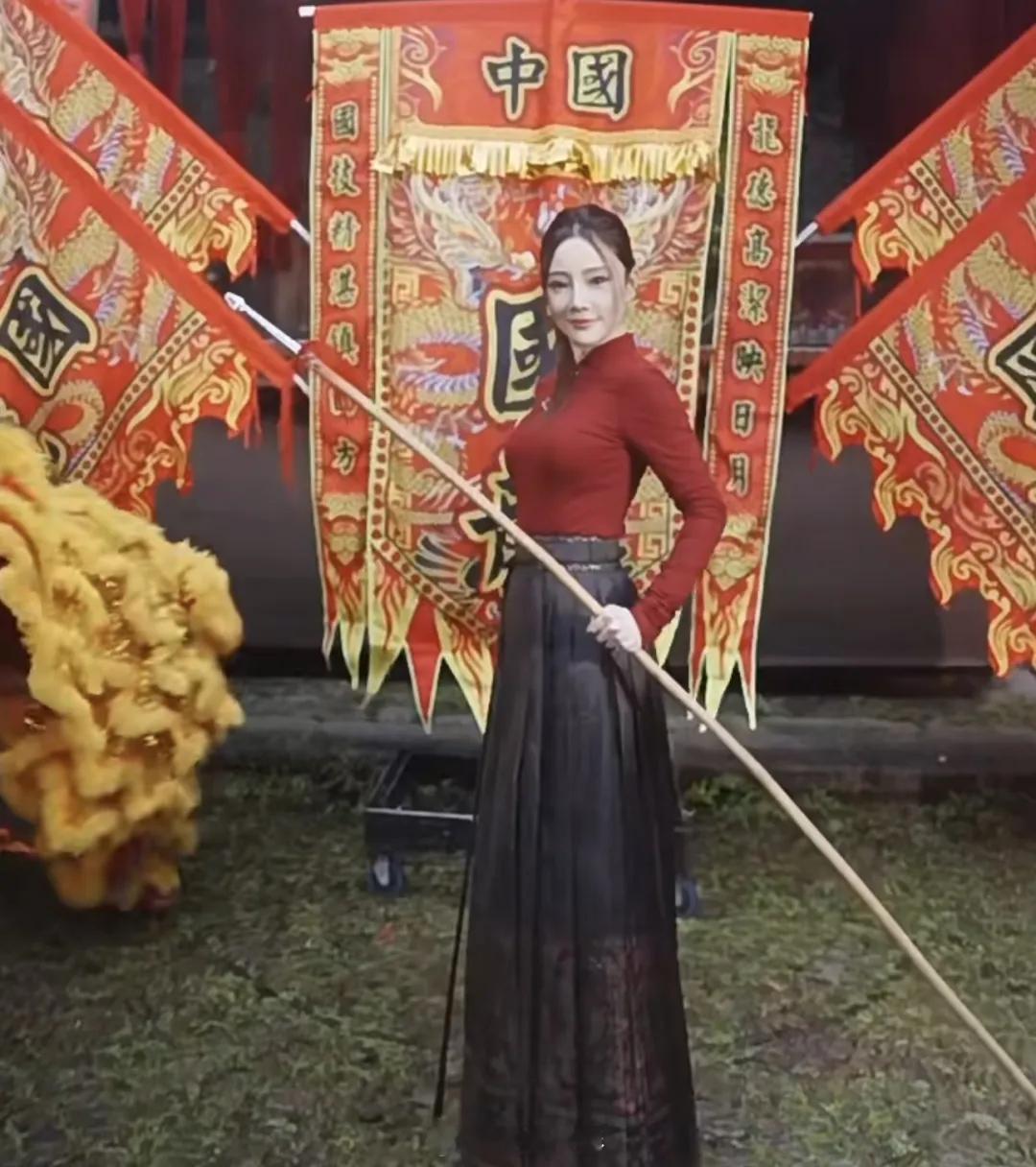 43岁李小璐舞出奇迹,打扮朴素庙里玩国粹,只是网红脸略夸张抢镜!