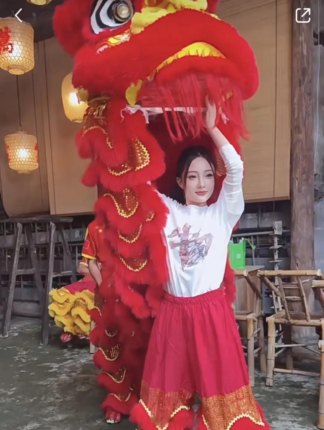 李小璐平日里酷爱学习舞蹈,所以这种舞狮的台步对她来说也是轻而易举,一学就会。