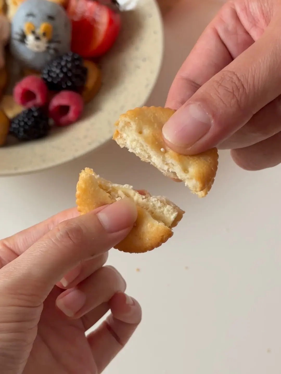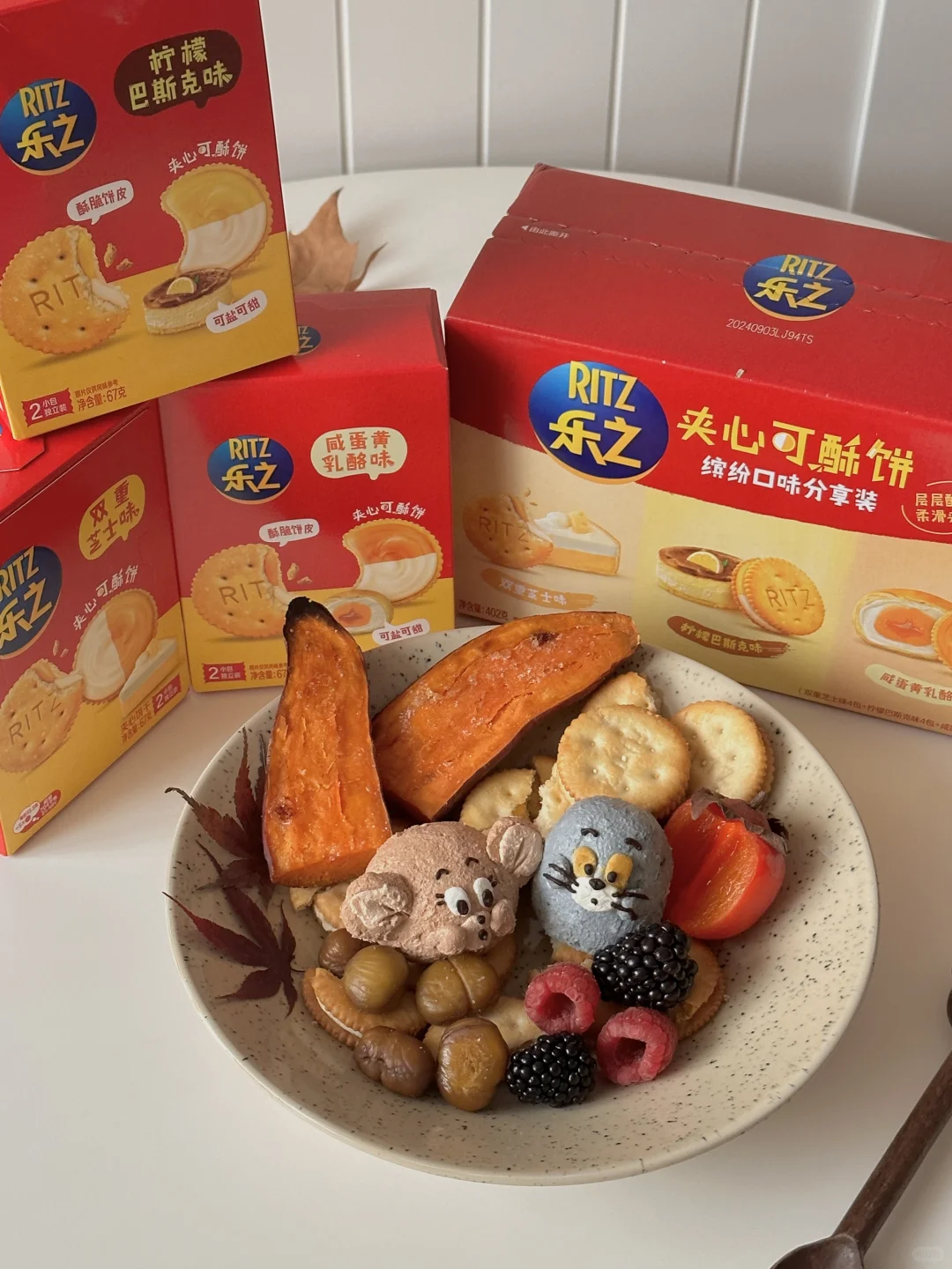 深秋的酸奶碗应该是这样子的~[大笑R] 可爱的Tom&Jerry希腊酸奶,搭配上秋日限定的好吃水果,焦糖味的红薯,以及zuì重要的点睛之笔乐之夹心可酥饼,用美味酥脆的夹心饼干代替燕麦,口感丰富,口味up~ 酸奶碗所需材料: 过滤好的希腊酸奶,红薯,栗子,柿子等喜欢的,可可粉,竹炭粉 制作步骤: 1️⃣希腊酸奶调色(可可粉:棕色 竹炭粉:灰色 ) 2️⃣捏出Tom和jerry的样子 3️⃣巧克力笔画出细节部分 4️⃣搭配上其他水果等材料 5️⃣乐之夹心可酥饼掰开围在旁边 这样一份好吃的饼干酸奶碗就完成![赞R] 饼干的花式吃法一定要来试试哦~[吧唧R]掰开饼干,入口香酥,咸甜交织,真的好好吃~一个个黄金小圆饼,一口一个,轻盈酥脆三种双拼口味,一定有你喜欢的那一个!双重芝士味,柠檬巴斯克味,咸蛋黄乳酪味,喜欢的口味都被集结在此啦!! 品尝美味的同时,用一块饼干,玩转出乐趣生活,那就一起来参与掰一掰,掰乐之的活动吧~和家人掰一掰,谁小块,就去做家务!让家充满欢乐和趣味吧~