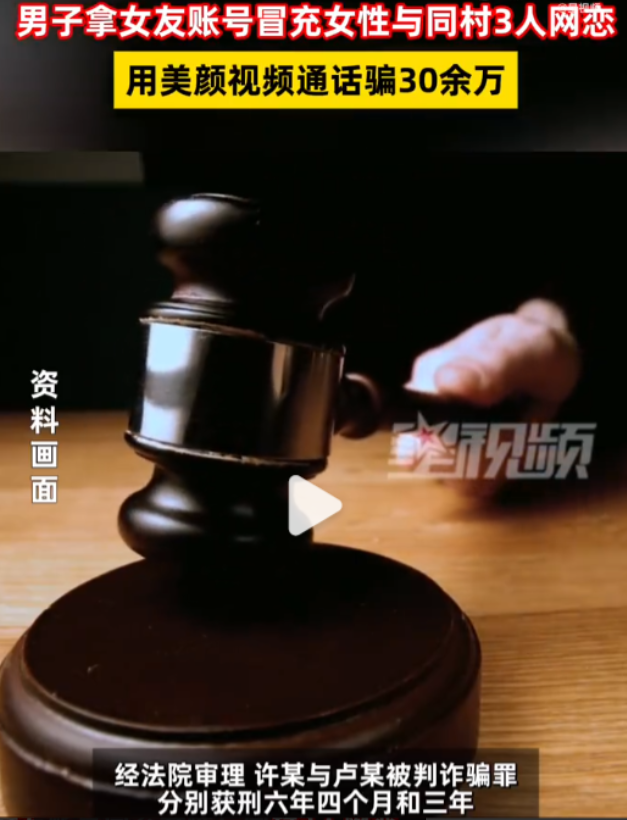 “网恋吗?我萝莉音。” 广东潮州,三个男子以为钓到了“女神”,奔着奔现结婚去,结果30万打了水漂,发现“女神”竟是同村抠脚大汉!近日,饶平县人民法院公布了这起诈骗案,2023年4月份,至8月份期间,男子利用女友账号,与同村三名男子网恋,诈骗30万。两人双双被判刑。
