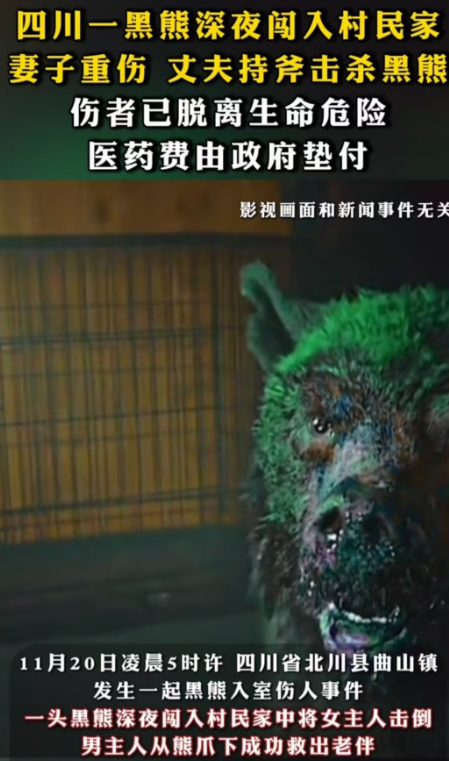 四川,绵阳。女子听见家里狗叫开门查看被黑熊扑倒,丈夫听见妻子呼救冲出来和黑熊搏斗在一起,随后用斧头将黑熊劈死。网友:摊上事了,杀死保护动物最少判十年!