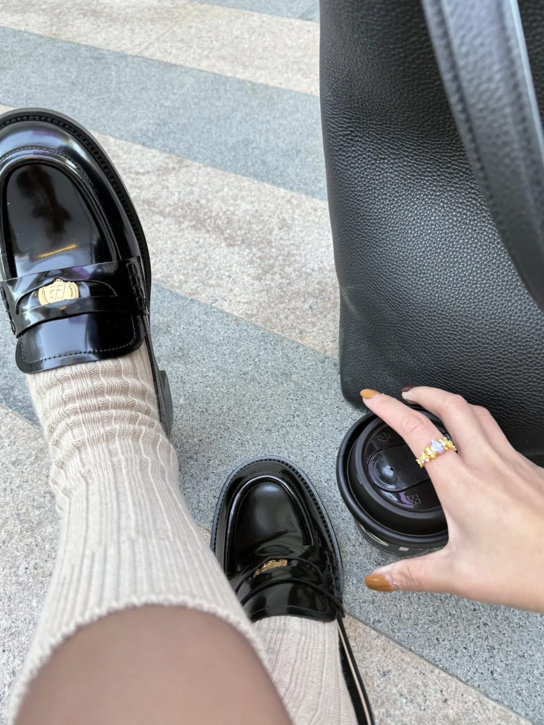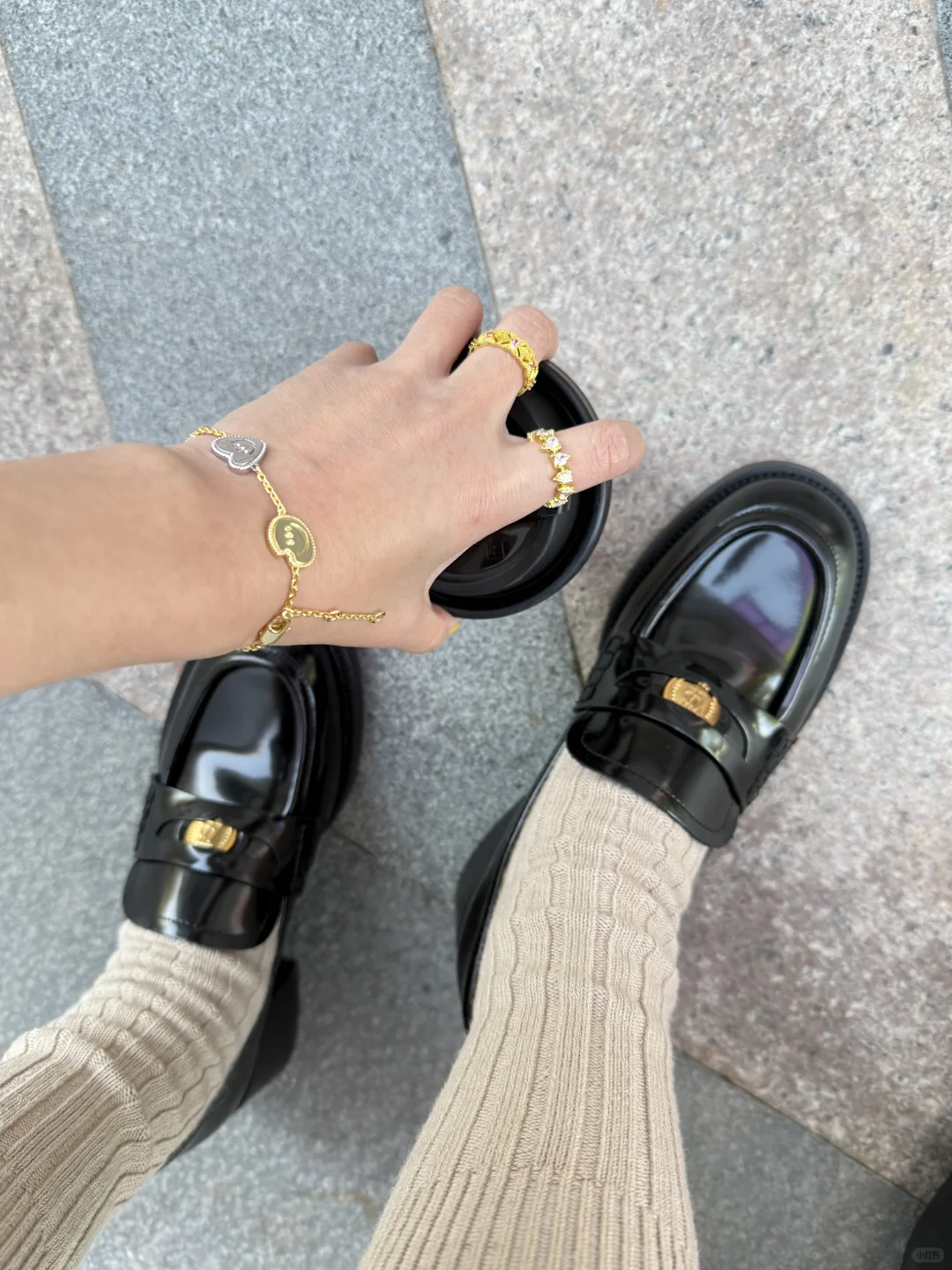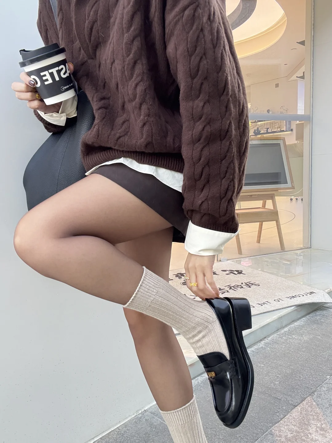 hello,姐妹们,又是一期穿搭分享! 在忙碌的职场生活中,穿搭实用又百搭,如果穿搭还能提升自己职场好运气,想必是大家也喜欢的主题分享! 本期搭配的有点韩里韩“藏富”职场风! 🥼:上衣选择深棕色针织开衫叠穿白衬衫,打造温柔又干练的职场气质。 👗:棕色短裙与同色系短袜的搭配增加层次感,同时与乐福鞋的风格完美契合,打造简约优雅的氛围。 💍:穿搭少不了配饰点缀,用金色细节点缀,比如手链、戒指,与鞋面的金属扣相呼应,提升整体精致感。 👟:我这次搭配的鞋子来自73hours 幸运币乐福鞋,当时就觉得这个鞋子鞋面装饰的金属幸运币设计,是藏一部分在鞋里,象征“藏富、护身”的寓意,财不外漏,闷声发财才对嘛,就有种帮助我们日常工作中积攒好人缘和好机遇,穿对衣服更是气场加分的关键。 2024年也接近尾声也希望喜欢我的姐妹们都能藏富吸收正能量加持,状态好事业也会顺风顺水!