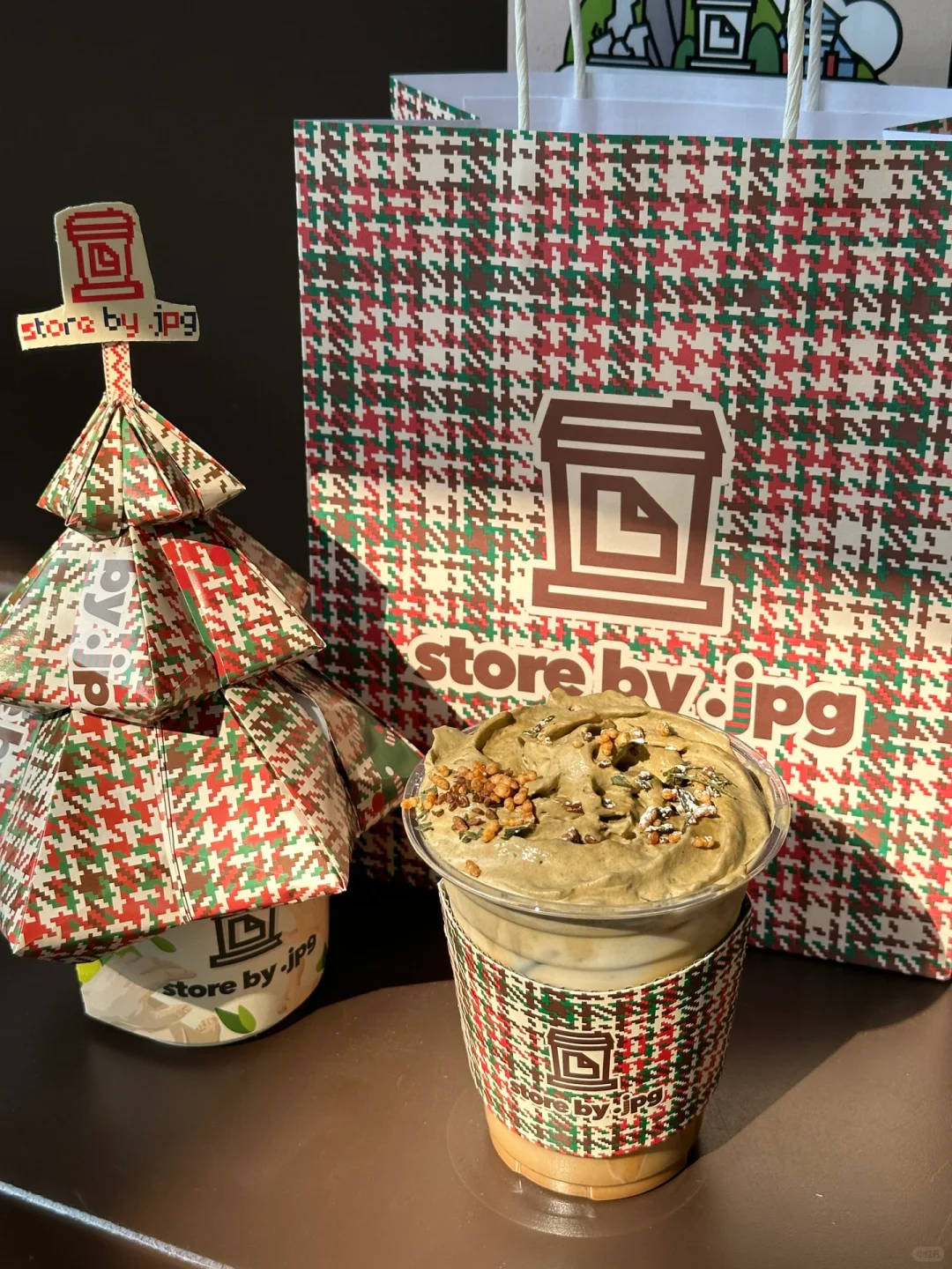 JPG 圣诞特调回归🍫🎄 焙茶巧克力这两个一起怎么会不好喝 奶油顶上撒的是莓果和炒米[喝奶茶R]