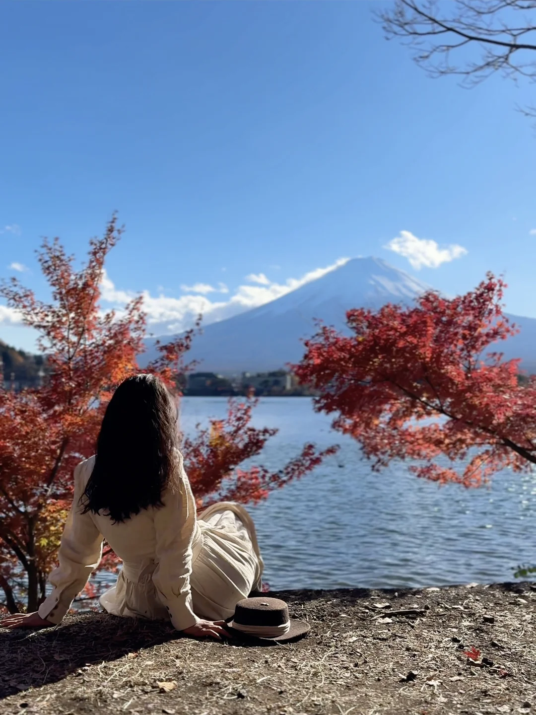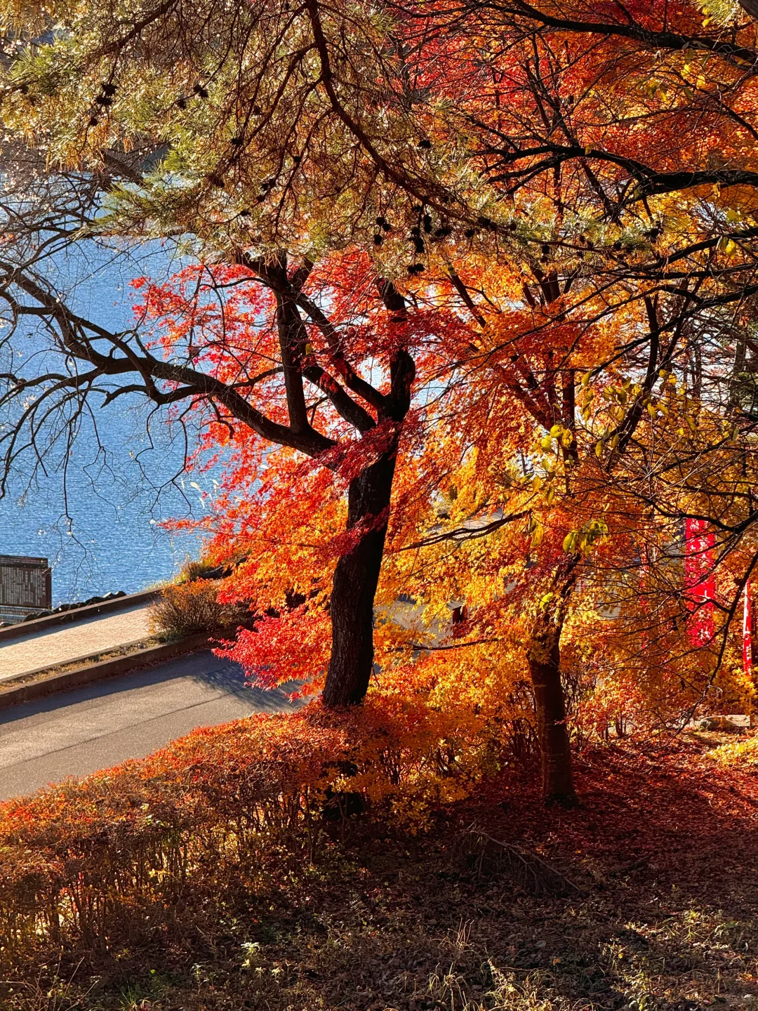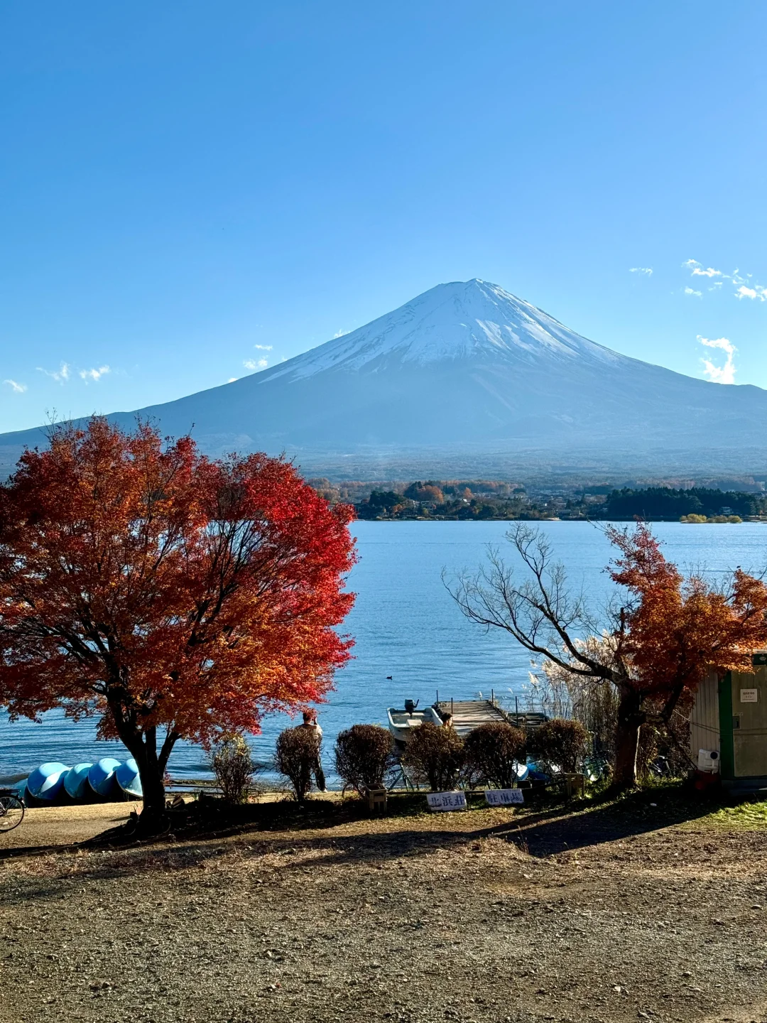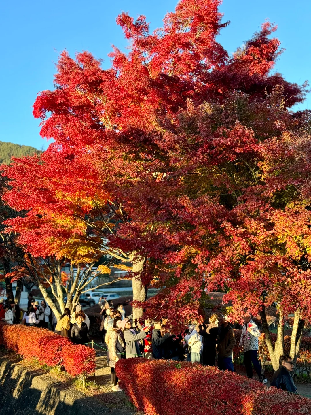 在河口湖租个车可以环湖骑行一圈,一路上都是颜色绚烂的红枫,眼睛根本看不过来!