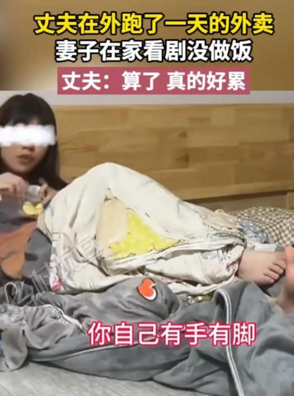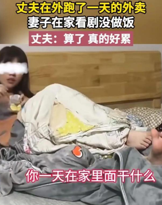 那天,丈夫在外卖了一整天后,饥肠辘辘地回到家中。然而,映入眼帘的却是妻子躺在床上悠闲地吃零食刷剧的情景。