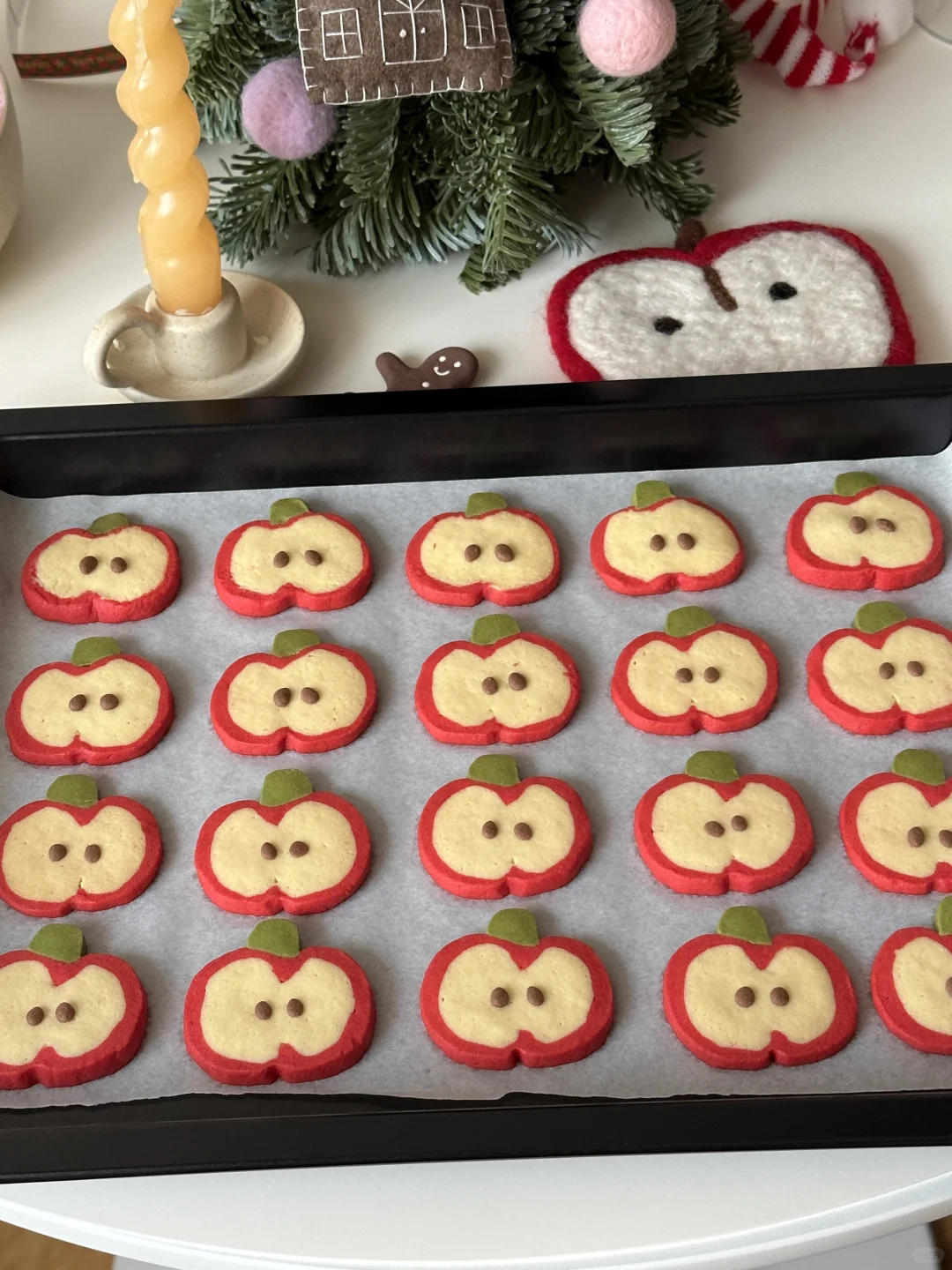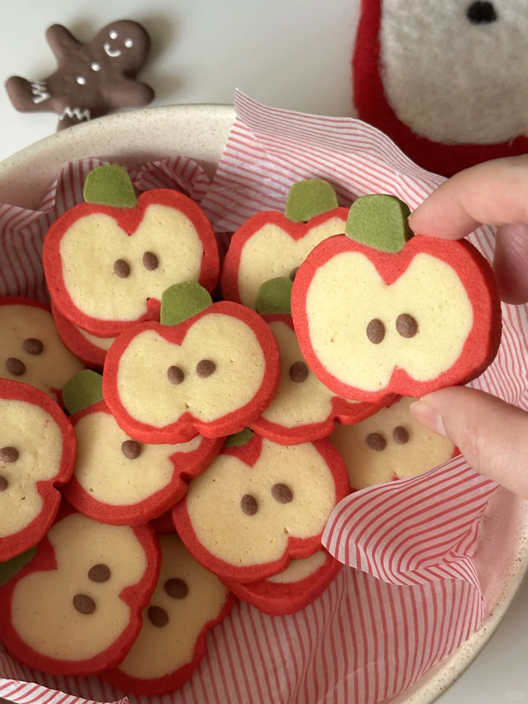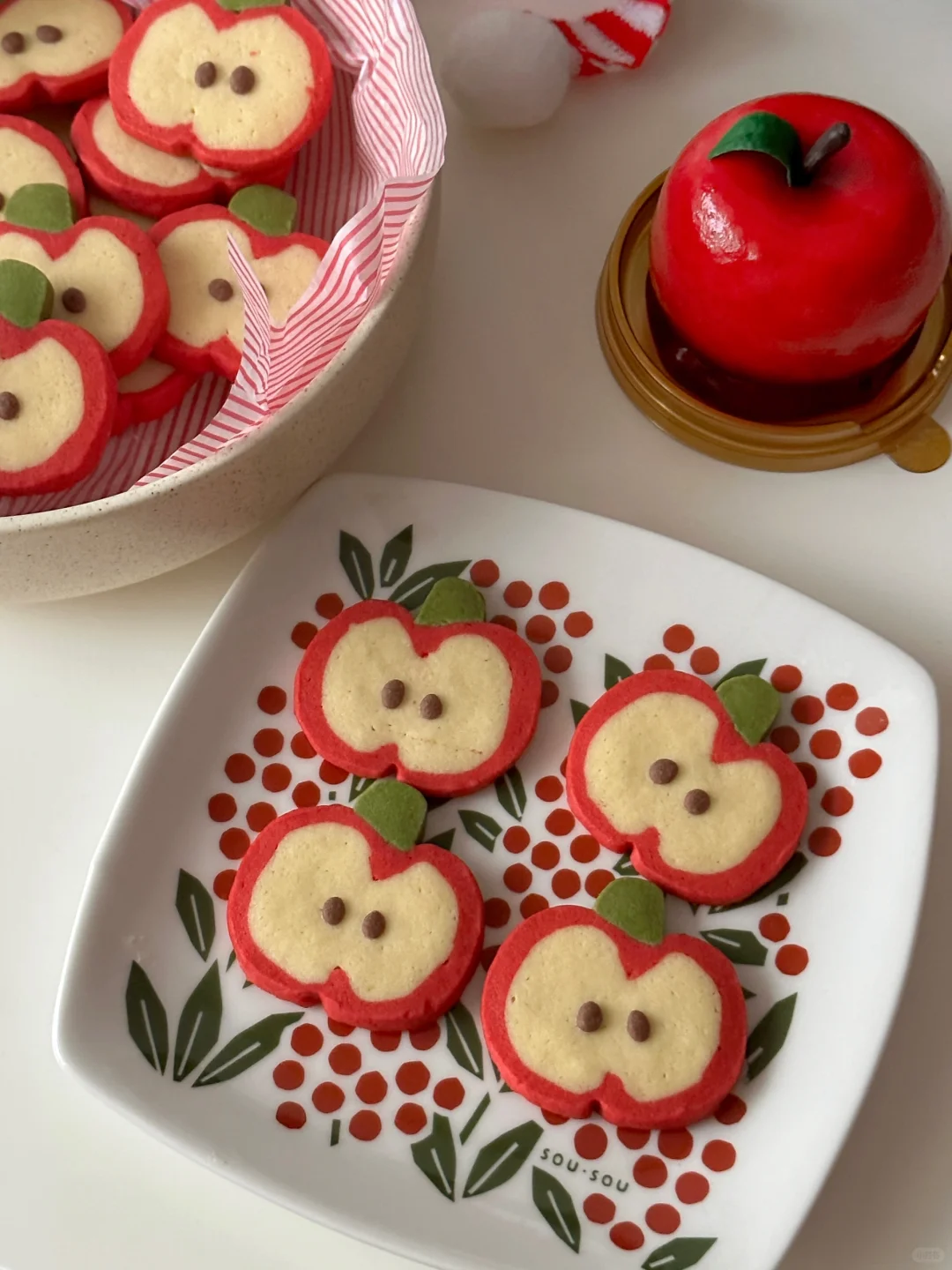 圣诞节必不可少了苹安果,一起动手做可爱的苹果曲奇吧~