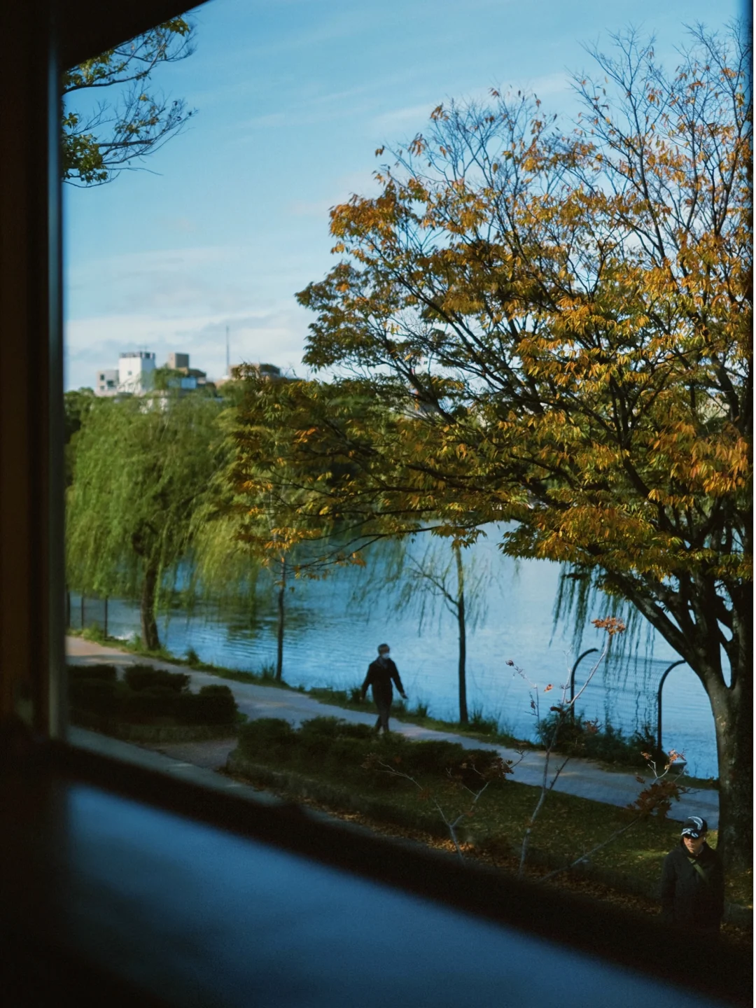 银杏对面睡着的脸和傍晚的玻璃,