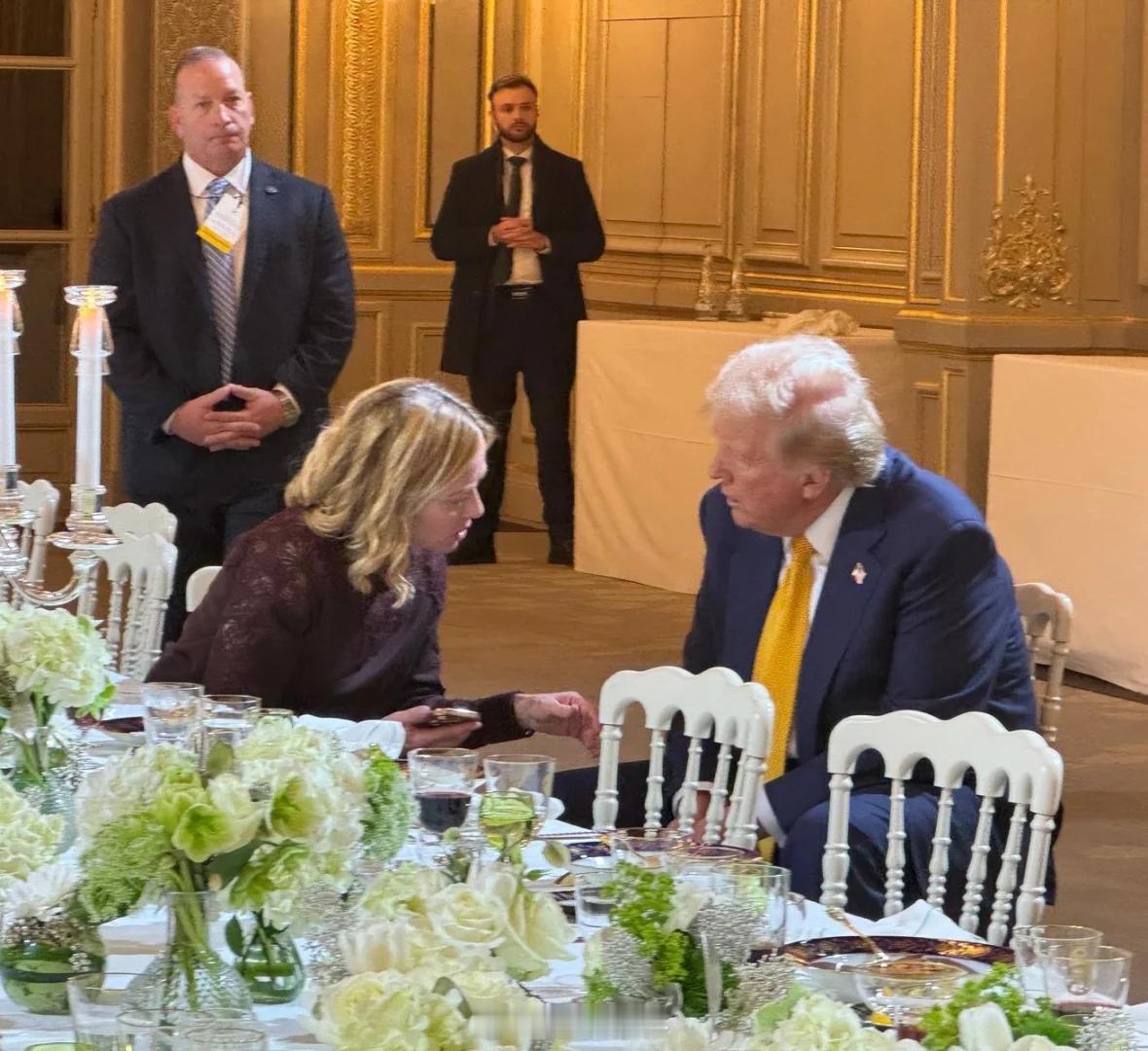 抓拍:意大利总理梅洛尼看老马眼神都拉丝了当选总统唐纳德·特朗普、埃隆·马斯克和意