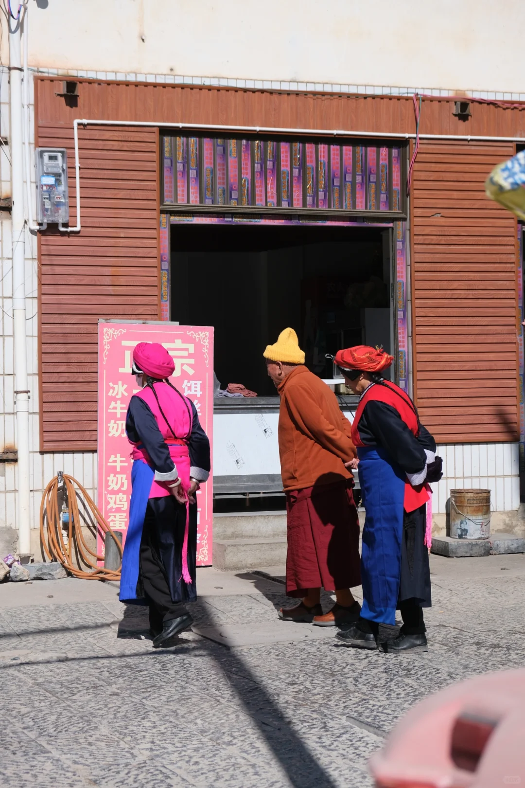 我第一次来比较幸运的是还碰到了从香格里拉来的藏族奶奶们下来过冬,听餐厅老板说每年他们都会来住一个月,然后看到奶奶们走在大家上真的是一道美丽的风景线!