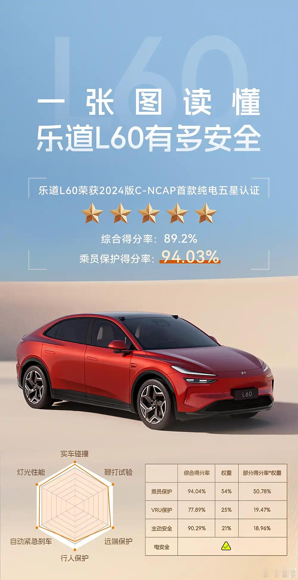 乐道L60的面子——获2024版 C-NCAP 首款纯电五星成绩