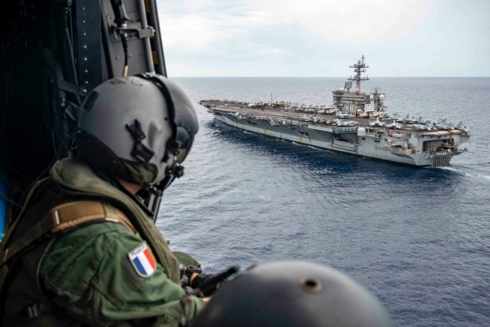 10日,在紧邻南海的苏拉威西海,美、法、日开启了为期一周的联合海上演习。根据美方的通报,此次演习,美军出动了“卡尔文森”号核动力航母打击群,法国出动了“戴高乐”号航母打击群,日本出动了“加贺”号航母;三国还出动了其他舰艇和战机,阵仗搞得相当大。