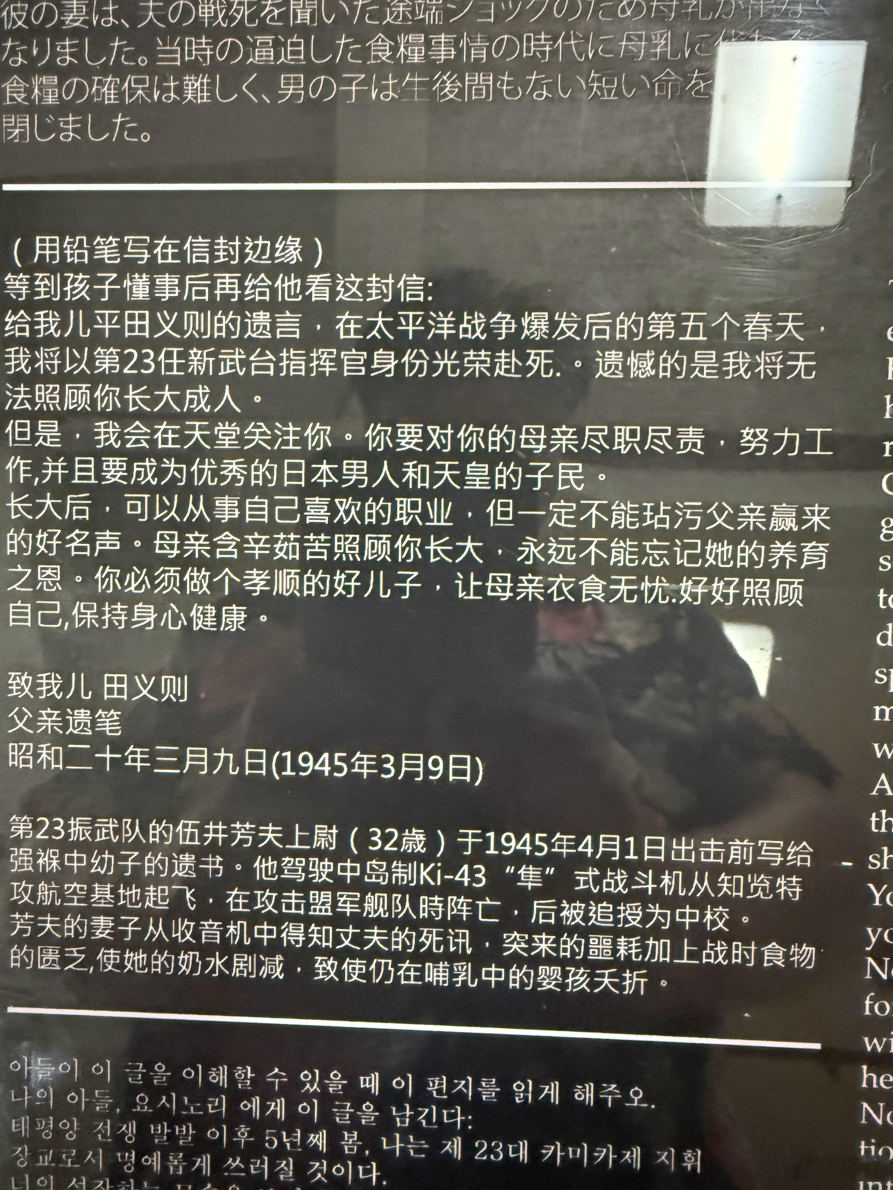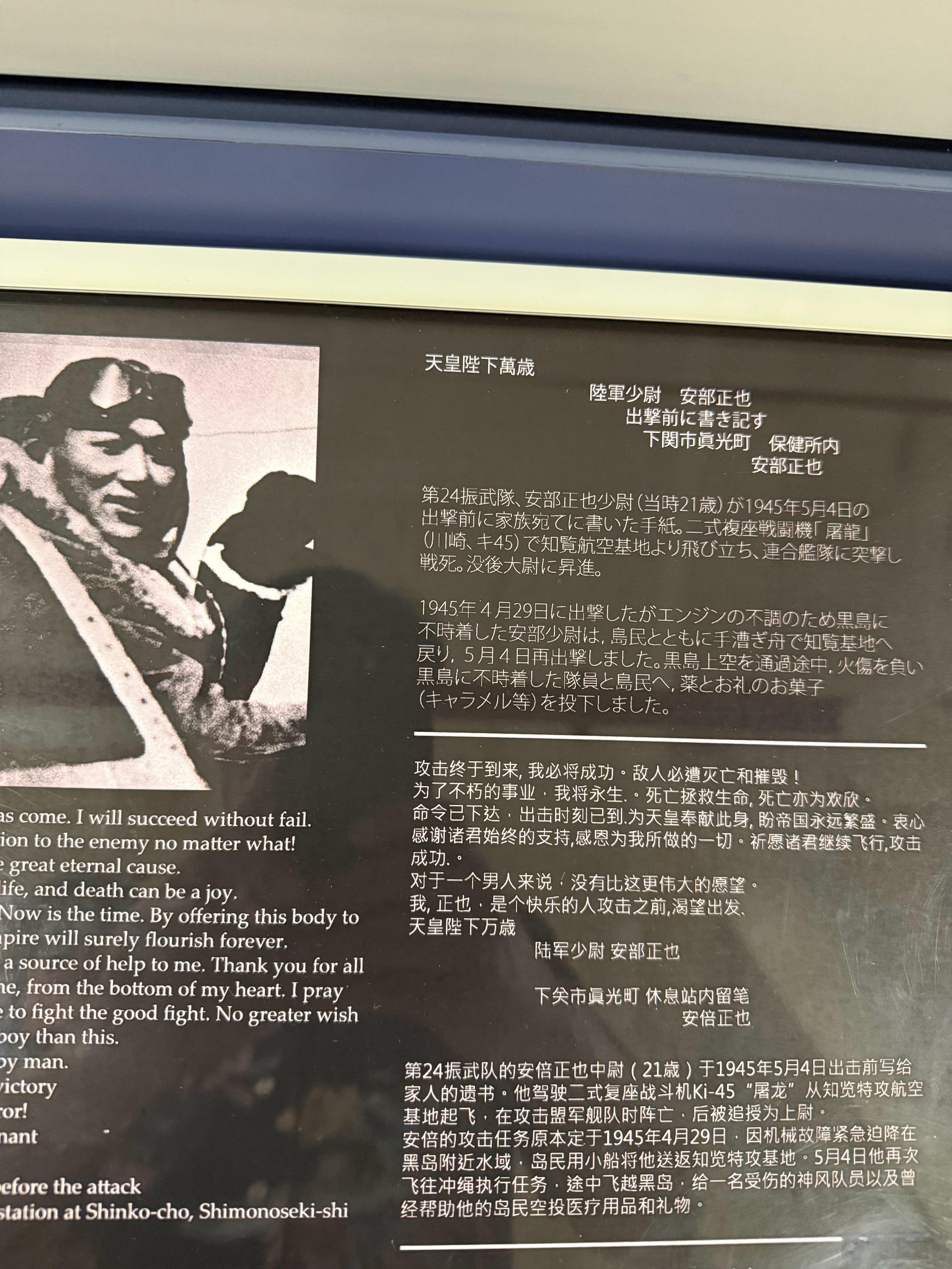 珍珠港纪念馆展示了一批日本神风敢死队飞行员的遗书,从字里行间看,真是看得直起鸡皮疙瘩,日本军国主义的洗脑真是太彻底了,这些炮灰真觉得自己是为正义捐躯。,实际上他们都是刽子手。