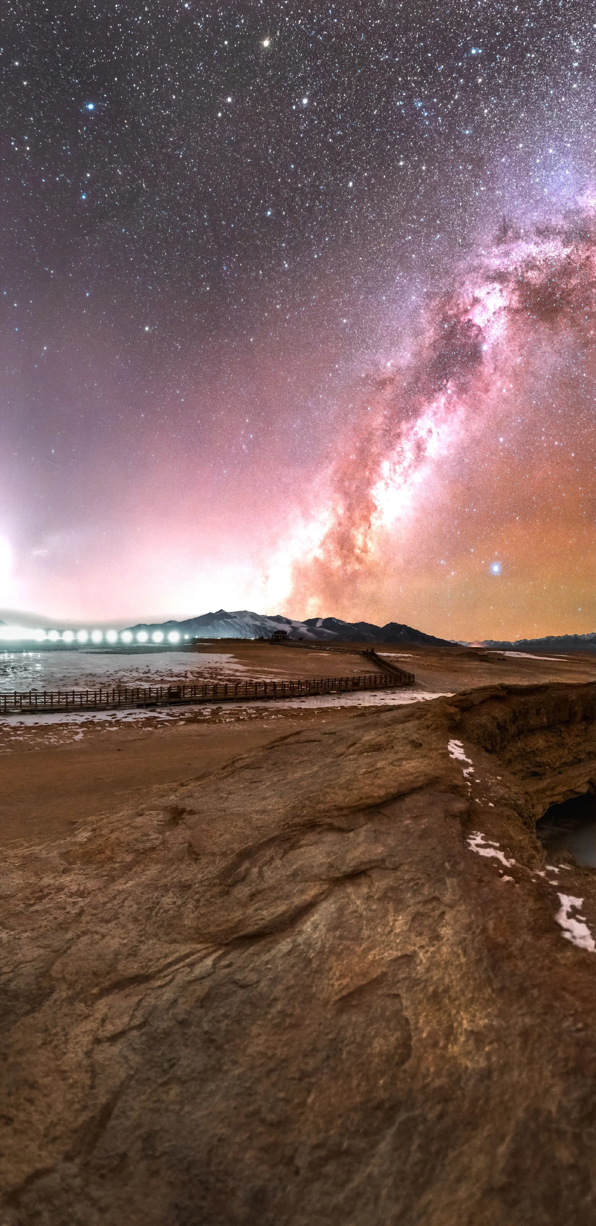 帕米尔之眼上的银河拱桥。沿着白沙湖北岸的木吉边防公路两个小时不到的车程...