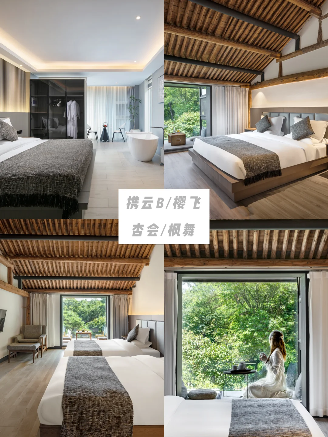 🏡客房——6个独立私汤树屋+4间基础客房+4间森林景观房+4间森林套房,每间房都各有特色,并且全都自带超大落地窗可以观景赏樱花,私汤树屋为独立泡池