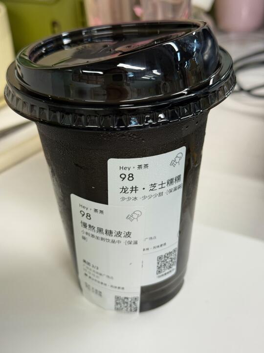这杯喜茶有种回到以前的感觉了! 好喝啊啊啊啊啊! 龙井香很突出~就是米麻薯有点难吸上来