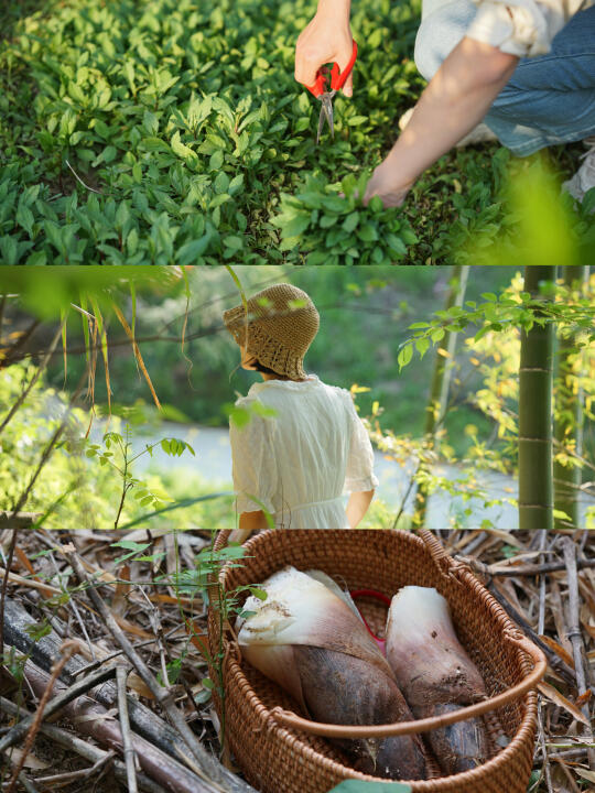 ✅组队挖野菜:去竹林挖比大腿还粗的毛笋🎍,去摘山里不要钱的野葱、马兰头🌱,晚上能不能加餐全靠自己啦~