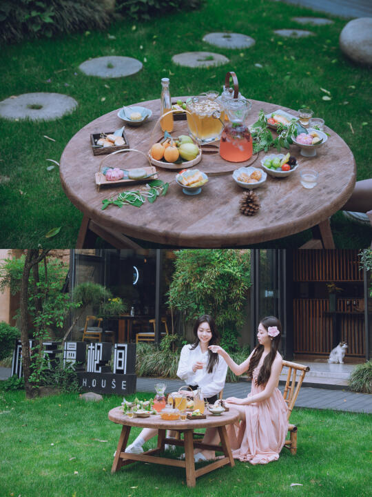 ✅草坪长桌晚餐:极具浪漫的晚宴+露天电影🎥+山野KTV🎤,氛围感拉满!