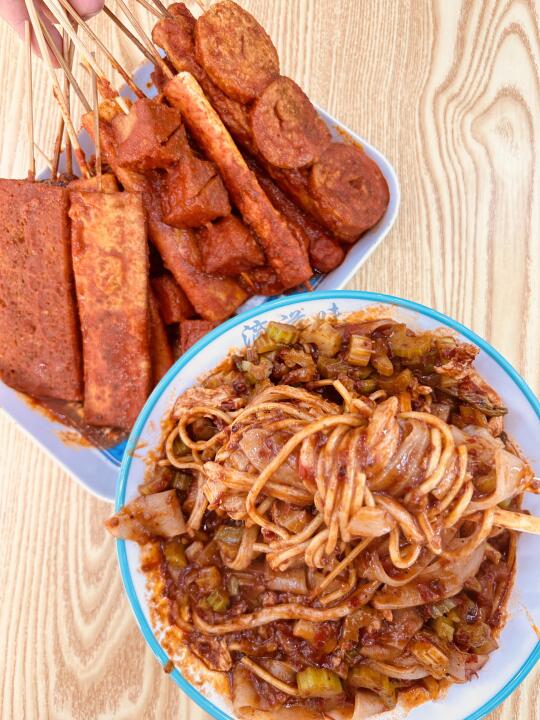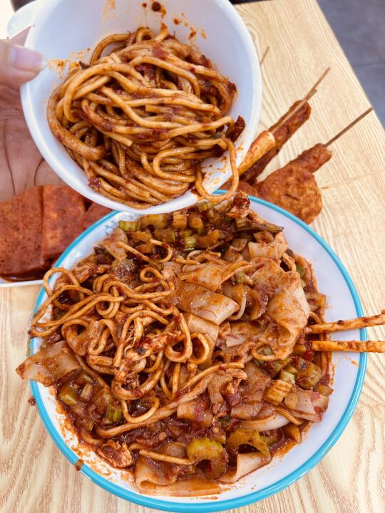 酱汁浓乎乎的,点了一大把,这次是把串串吃爽了[色色R] 还点了米粉味十足的炒三凉,嗦愣一大口,好爽~