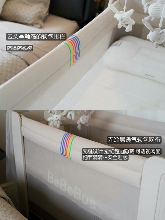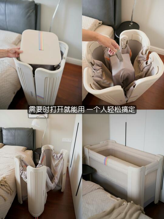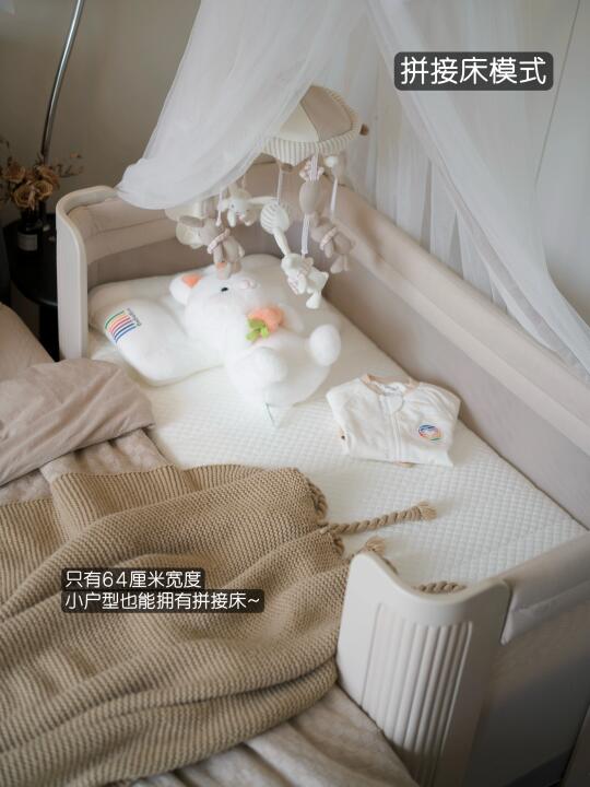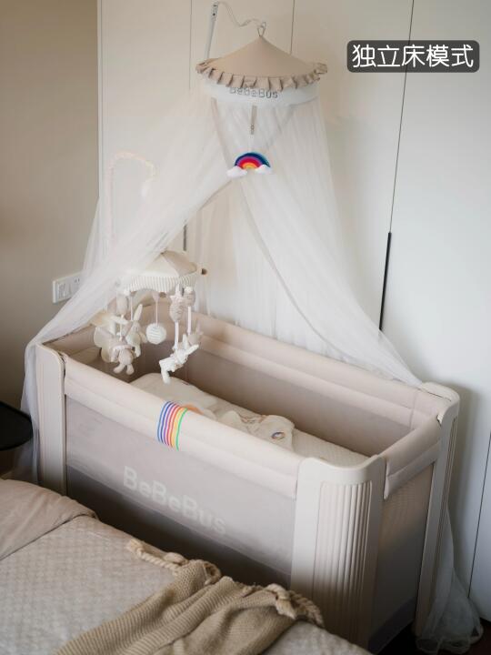 Hello,这里是妍妍妍的家🏠 套内76平,小三房,每个空间都不大。 两人小屋升级成三口之家, 给宝宝挑选个合适的婴儿床真的让我前期做了不少功课。 🧺我们的需求是: ①尺寸小巧,灵活好收纳。 宝宝不同阶段可能在主卧次卧两个房间都会用到, 希望不管谁带娃宝宝都能有独立睡眠的空间。 ②细节到位,环保安心。 ③颜值和功能一个不能少。 挑挑选选终于找到了适合小户型的—— BeBeBus的筑梦家婴儿床, 拆箱的瞬间就被颜值吸引了~ 香槟色碰撞软包材质,高级感满满,和我家软装很搭配。 安装也很简单,一个人轻松搞定。 其他方面也很戳我: ▫️小巧便携✓ 展开尺寸:1250*640*850mm,宽度对小户型友好。 折叠尺寸:334*850mm 搭配静音万向轮,几个房间来回推着使用都很方便。 以后带出去住酒店直接折叠塞后备箱就行~ 宝宝不管到哪都能有个熟悉安全的小窝。 ▫️安全性✓ 整床0甲醛0油漆0胶水 床板也是ABS环保树脂材料(机舱同款) 不用提前几个月散味,拆箱就可使用 宝宝长大到了口欲期啃咬也不担心~ ▫️长期性✓ 婴儿期可以选择拼接床或者独立床模式 宝宝会爬会走后转为游戏床模式 不用的时候也可以收起来还能当个床头柜 多功能才有长期使用的可能~ ▫️细节感✓ 整张床都是圆弧设计没有棱角, 防撞软包+网布护栏防止磕碰还可拆洗 床围的透气网面可视又不闷,随时观察宝宝状态。 🏠小户型的家也有了宝宝自己独立的休息空间 接下来就期待她👶🏻真实入住体验啦