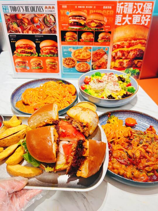 就是那个让我第一次吃完就心心念念再来吃的「辣皮子汉堡店」!这次带着家人朋友二刷,讲真!辣皮子一类太🈶️家的味道的,选用的也是本地的牧场牛肉🐮,肉饼厚厚的,好扎实🙆,再排配洋葱🧅西红柿🍅全家直接吃成表情包—— 下午四点🕓来的,人还是好多,还好稍微避开了饭店,哈哈,今天有大桌子可以坐了,准备一顿狂点~