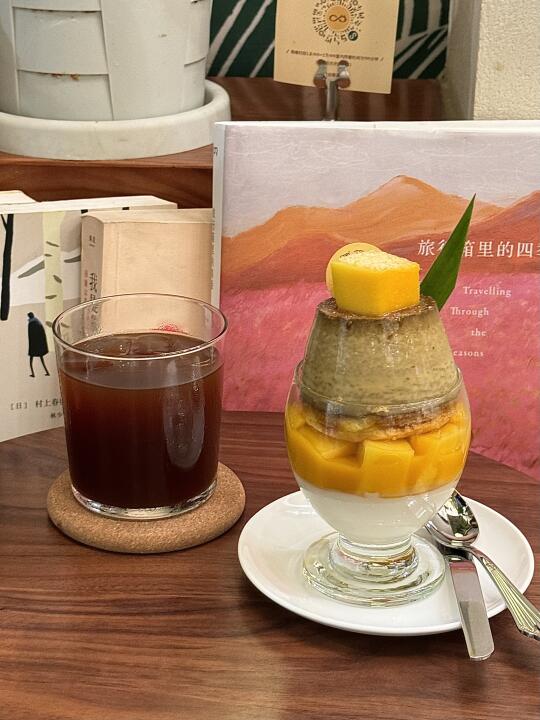 焙茶布丁烧🍮+甜芒🥭+龙井茶奶冻🍵 很夏天的组合 一勺挖下去好满足