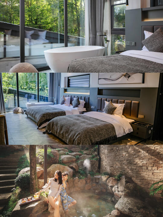 🔹5间树屋精巧的结构造型像童话故事中的精灵居所🧚美好得不真实,还可以泡森林冷泉