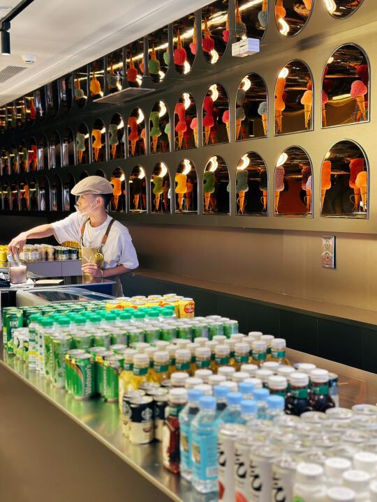 粉红色的网红奶昔🥤咖啡吧、茶吧和鲜果果汁都可以尽情畅饮,想喝什么就喝什么,真是太开心啦!