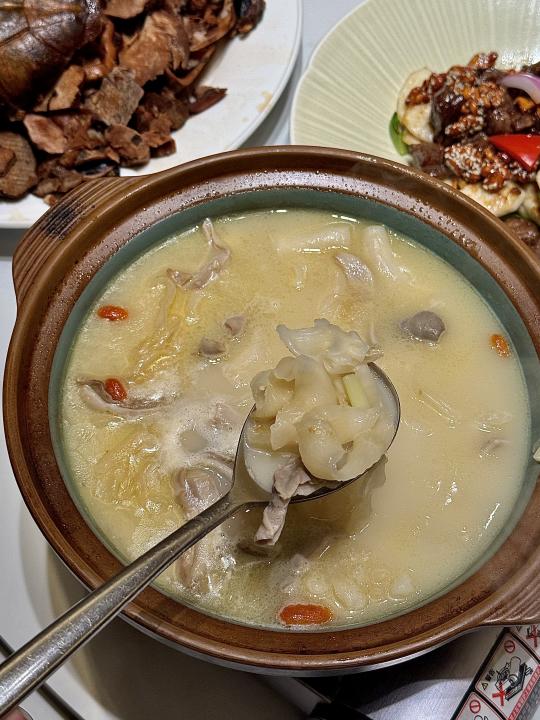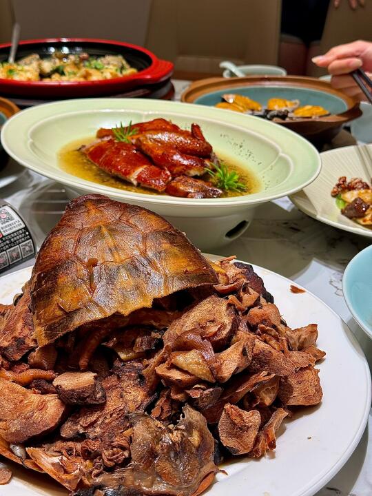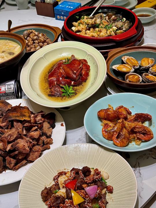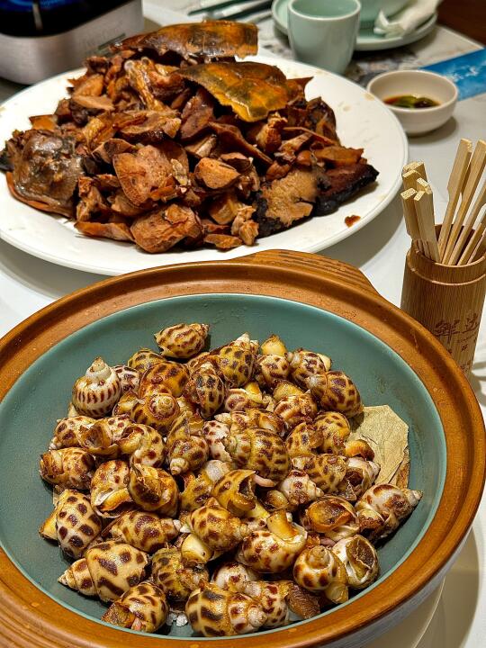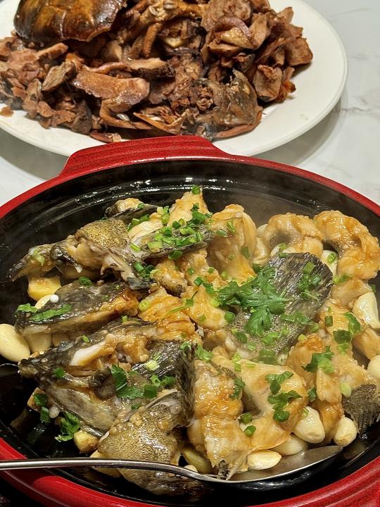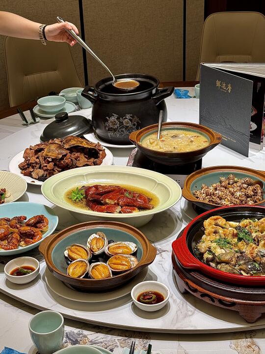 开在番禺11年的老字号海鲜酒楼,海鲜敲生猛新鲜,包厢天天订满 ❤️💗💓我的三件套: 🔸招牌鲜茯苓草龟汤 广东人认证的"掂过碌蔗"!药材香融进浓汤里~老火慢炖的广式滋味,阿妈都认证啊!也是到了爱喝靓汤的年纪了 🔸黑松露脆皮鸡 鸡皮爽脆,肉嫩多汁,嫩肉爆汁混着黑松露香,味蕾直接放烟花! 🔸生啫石斑鱼 啫啫煲上桌还在滋啦响~鱼肉嫩滑,原汁原味,锅气十足 工作日晚上都坐满,想吃建议早点来 广州美食番禺美食海鲜大排档番禺宵夜宝藏餐厅分享本地人都在吃