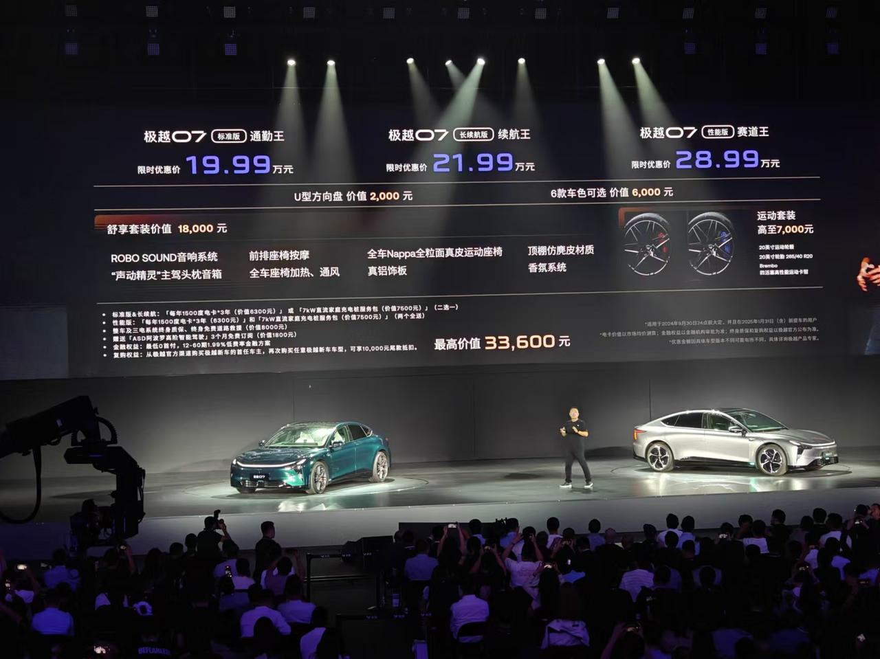 卷配置、卷安全、卷操控、卷智能,极越07终于来了。算上限时权益,19.99万元起,你心动吗? 具体配置: 极越07标准版:19.99万元 极越07长续航版:21.99万元 极越07性能版:28.99万元 产品来看很香,有百度的智能座舱和智能驾驶体系,底盘也用上了前双叉臂后H-arm全铝五连杆悬挂,总体还是值当。 极越 07 上市