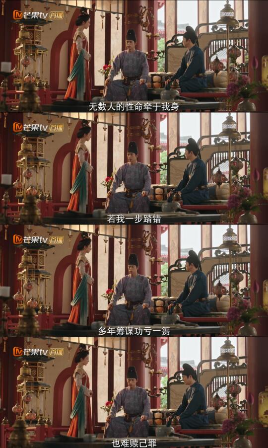 《锦绣芳华》第九集的末尾,直抒胸臆的表白氛围已经烘托好了。这俩走到今天实乃不易,宁王派人搜蒋府,是朝堂上刀光剑影、杀不见血的直接一幕。先是用“秦王诛吕相国”的皮影戏影射,随后以寻好酒之名搜罗蒋府,宁王的手段是顺水推舟:既然蒋长扬心中无愧,那便经得起搜。觥筹交错,琴声急促,三郎与长扬均有露馅,刘畅入蒋府搜查并寻到暗室,局势随之一转,这满室装扮,与“花鸟使”的身份正好相合,蒋君顺势喊冤,顺利解困三郎,宁王理亏,败下阵来。明明是极短的一段,却无比惊险。