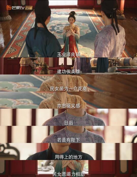 所谓眷侣,是人生的志向大体一致。蒋长扬要天下太平,政局清明,而何惟芳是花商,“只有安居乐业,百姓们才会花钱去买一株花,一抹香”。何惟芳说得好:“若任由贪官当道,民生凋敝,我们商贾的日子又怎会好呢,我做这些不仅仅是为了你们,也是为了我自己。”他们早已从“我”过渡到了“我们”,他们结成了坚实的联盟,一个眼神彼此就懂。敬懂得,敬配合默契,敬身边还好是你。