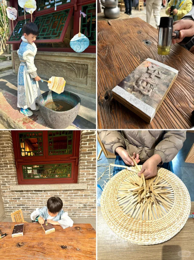 👉带小朋友可以体验的非遗项目:拓印,制作漆扇,铜点银壶,竹编,布坊,豆腐坊,章丘铁锅,游船体验,小朋友表示一次玩不够