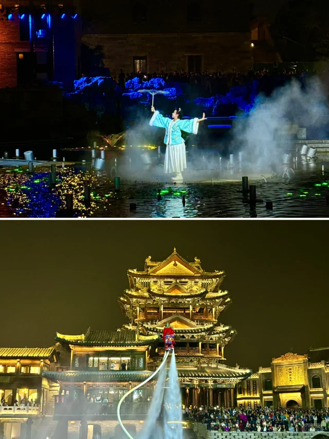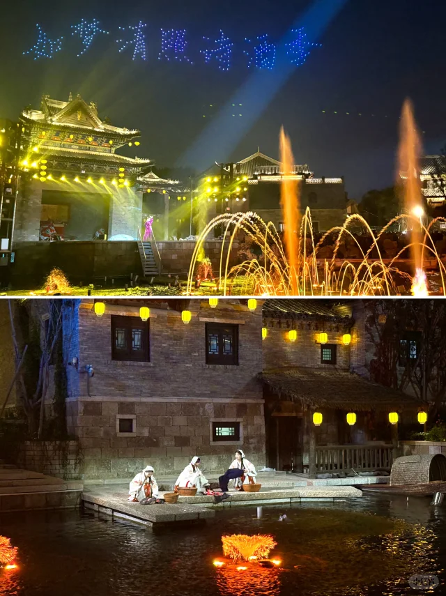 👉 晚上的泉秀表演特别精彩,一定不能错过。古城内住宿的游客会有专门的观看区域,视觉效果也特别棒