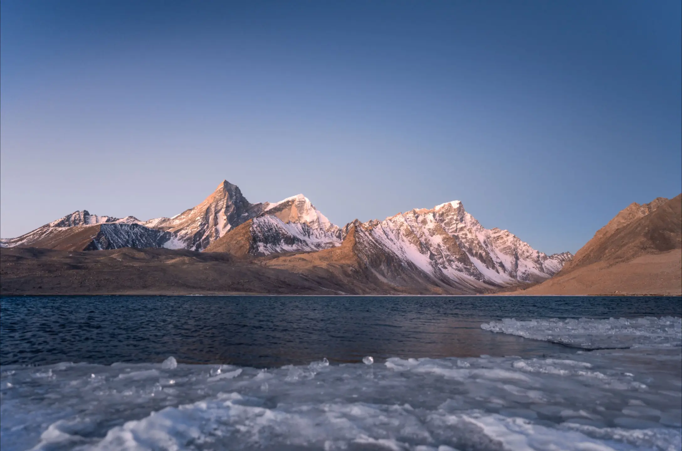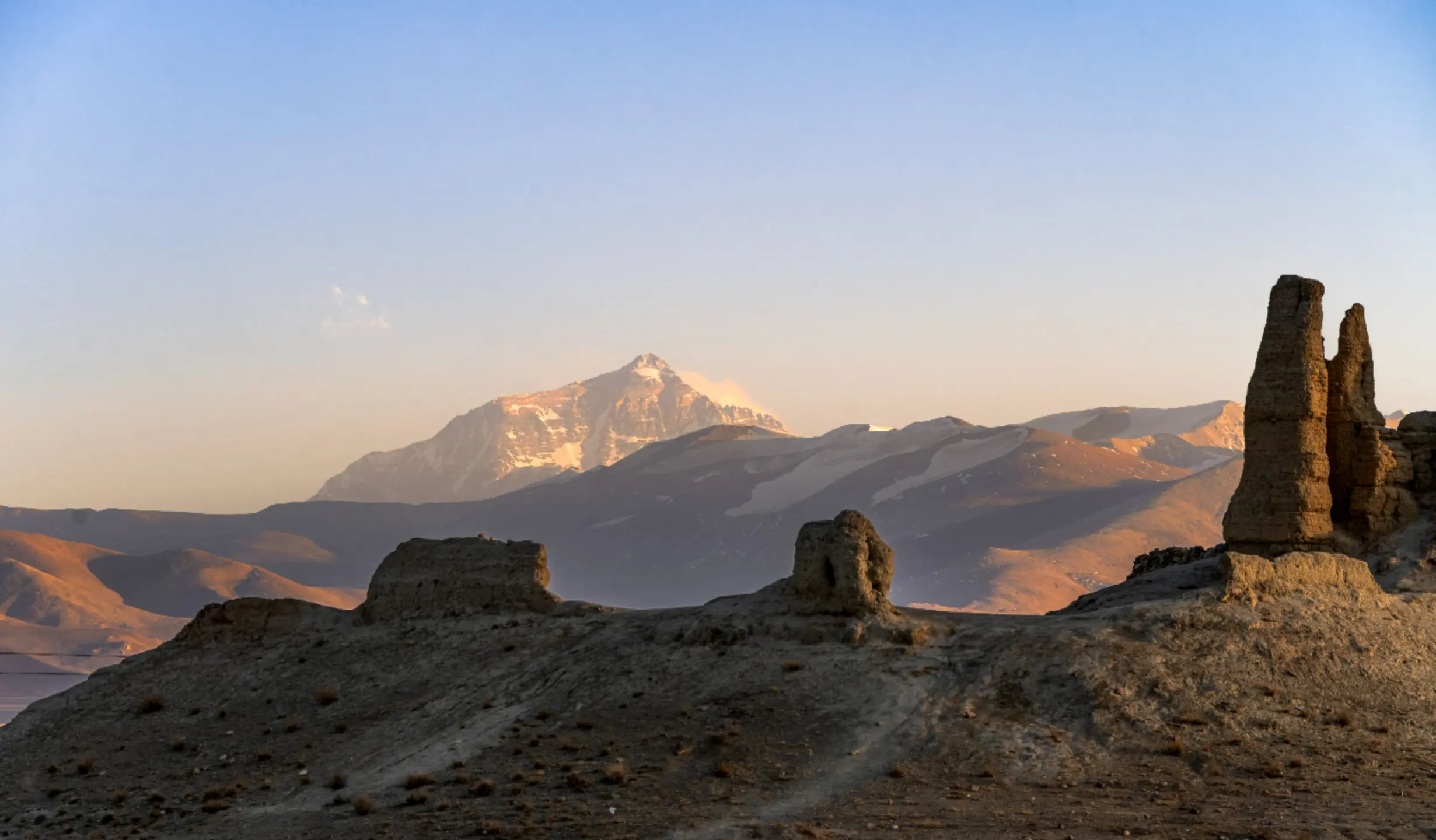 在帕米尔高原上见到的冰川。昆仑山脉第二高峰和“冰川之父”慕士塔格峰的一部分冰川
