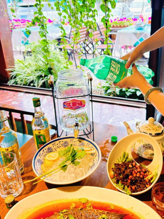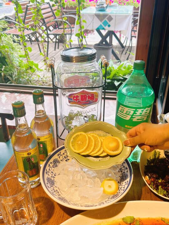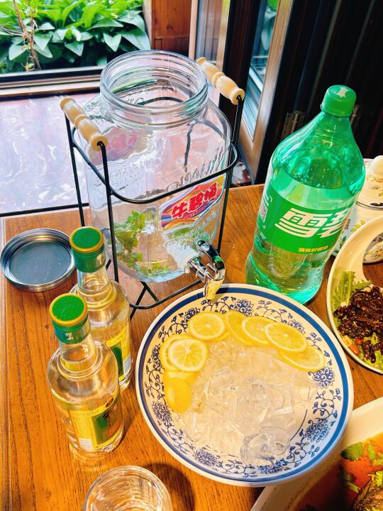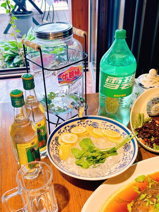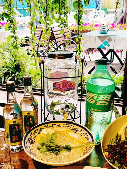 准备了牛栏山金标牛➕冰块🧊➕柠檬🍋➕薄荷叶🌱往大桶里一倒,酒和雪碧按感觉兑,爱喝果味的多丢几片柠檬,气泡咕嘟咕嘟往上冒,看着就清爽。