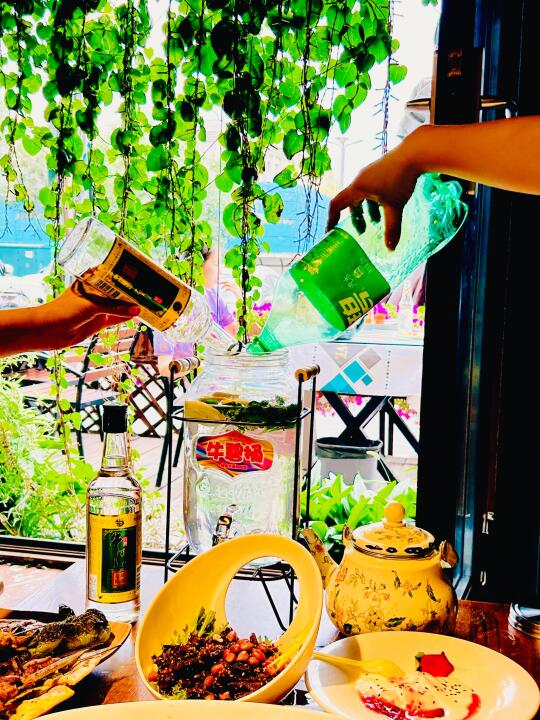 一家人🥰围坐着,边吃烧烤边碰杯,你添点雪碧我加点酒,不知不觉桶就见了底。不用讲究比例,随心意来,反而喝得自在。