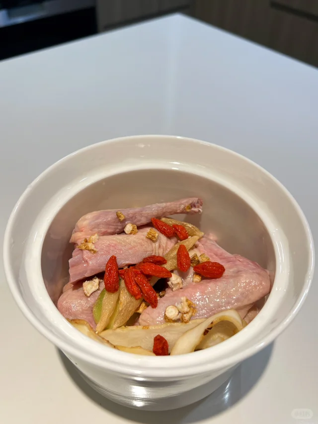 经常熬夜会导致体内虚火上升,花旗参炖鸽子可滋阴补肾,还可以补血,增强免疫力。工作压力大,时常熬夜的人可以多喝这个汤。 这里是两人份,单人份量减半。 🧑🍳食材: 1⃣️鸽子两只 2⃣️花旗参两根 3⃣️玉竹适量 4⃣️麦冬适量 5⃣️枸杞适量 6⃣️生姜四片 🥘做法: 1⃣️鸽子洗净去掉内脏,一开四码放进炖盅。 2⃣️所有干货清洗干净,花旗参剪成小粒,放入炖盅内,加入八分满清水。水开后蒸两小时即可。 ❗️小贴士: 1⃣️炖汤煲汤的鸽子选用中鸽或者老鸽味道比较好。 2⃣️懒人可以直接买花旗参片。
