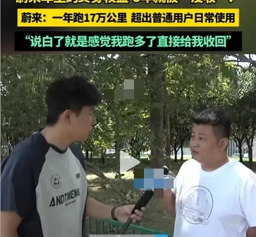 蔚来车主遭车企“背刺”,原因是车主一年跑17万公里,终身权益被收回了! 原来这个车主在2020年花了60万买了一辆蔚来ES8,这才刚5年。就在前不久,他收到车企发来的信息,终身权益被车企收回了。 车主表示不服气,找来了调解员。表示自己当时签订的合同就是终身质保,终身免费换电。 这才过去5年权益就被收回,蔚来的“终身”这么短吗? 蔚来车企回复:车子使用超出普通用户日常使用! 这一幕也引发了网友的热议。 有的网友说:车企回收得对!一年17万公里相当于每天465公里,按城市50公里/小时算,相当于全年无休每天不间断行驶时长在9小时以上,他这肯定是在搞运营。 有的网友说:1年17万公里也是很正常的事儿!我的车因为工作关系,长往返期新疆和大西北,两年20多万公里。这只能说企业输不起! 有的网友说:这兄弟聪明啊零成本跑网约车。用首任车主终身免费换电次数,来跑出租。电还是免费的,这哥们一天至少得挣700元。 ………… 要我说啊,如果是不涉及营运,一年跑17万公里,确实太夸张了!车主是怎么做到的? 如果涉及营运,一年17万也很夸张,估计司机换班,车子日夜不停休的跑[尬笑]。 不过话说回来,一年跑17万公里,说明电车质量好啊!一辆新能源车,一年跑17万公里,这简直就是行走的活广告啊!车企为啥不好好利用起来呢? 要知道这要是油车,估计保养费都要不少吧。 那么大家说说,这个车主到底是正常使用,还是非正常使用呢?