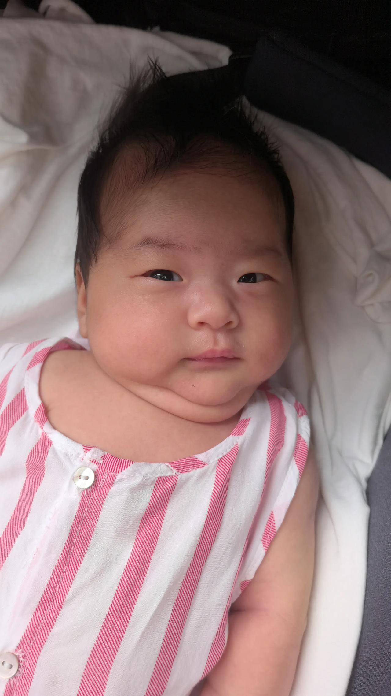 我家外孙女喜乐今天整51天了,一天一样,小胳臂都有了小藕节,捕捉到了睡梦中的微笑,宝贝姥姥爱你