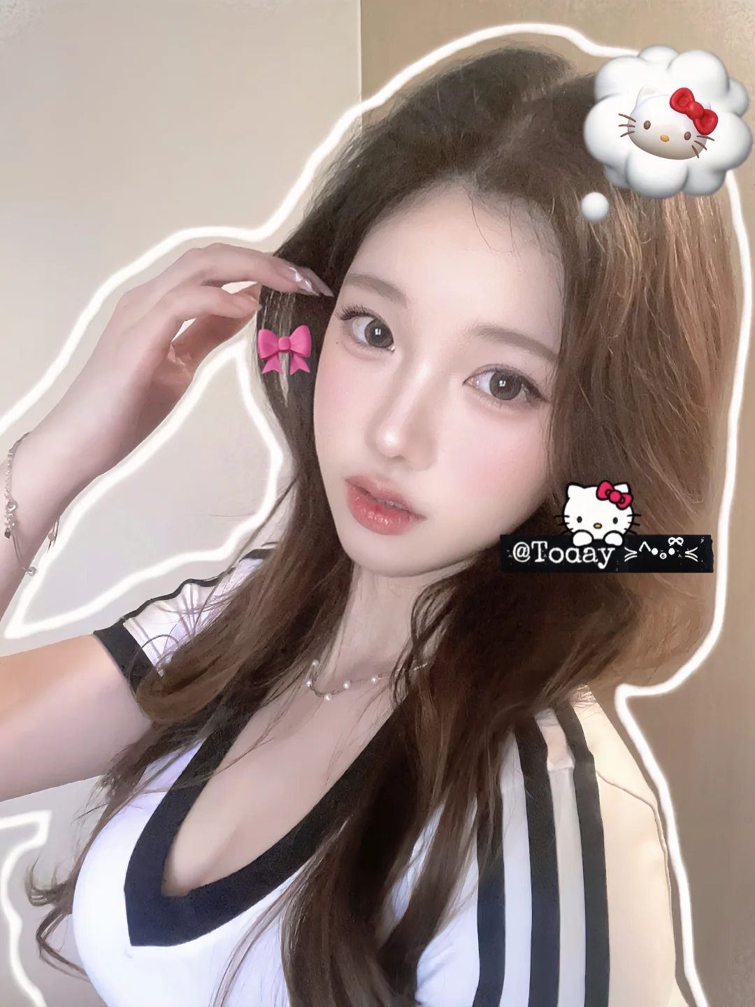 自拍加上韩系贴纸模版 一下子画面就丰富了起来 还是好喜欢这些可可爱爱的玩意儿[抽泣R]