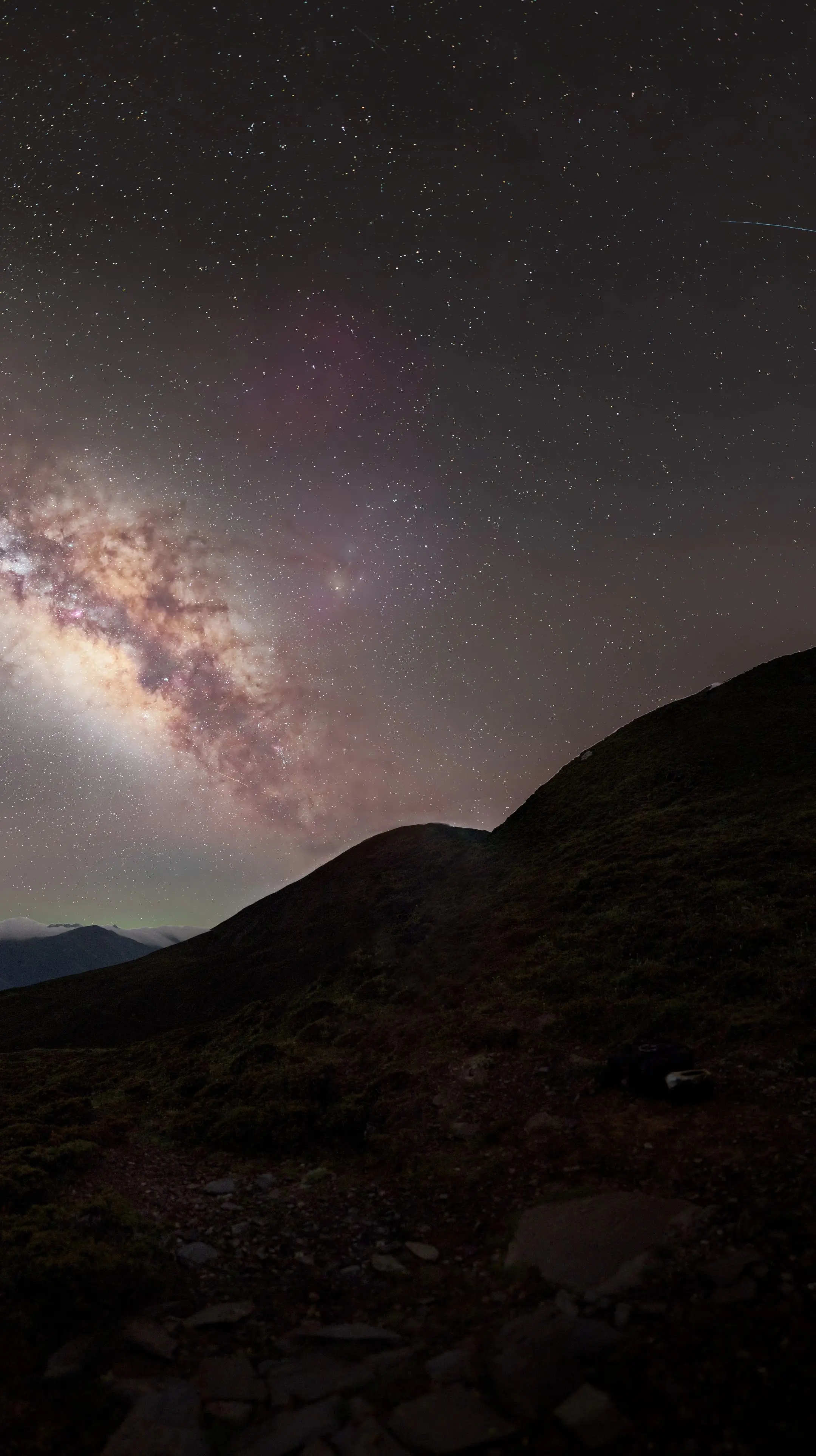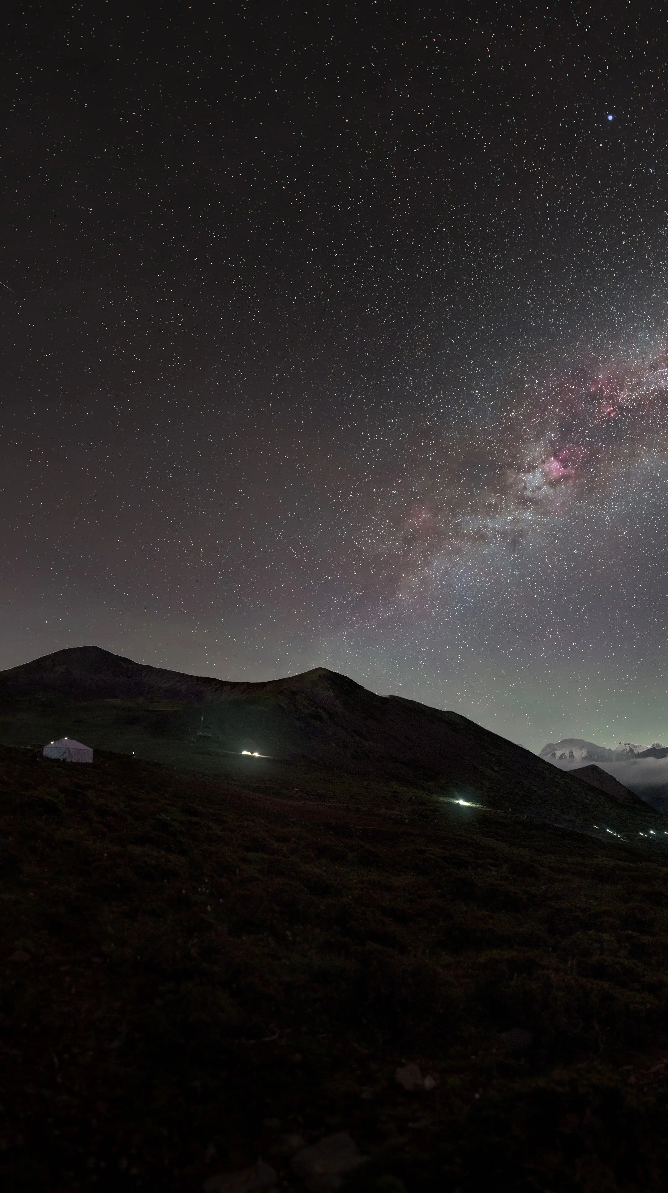 帕米尔之眼上的银河拱桥。沿着白沙湖北岸的木吉边防公路两个小时不到的车程...