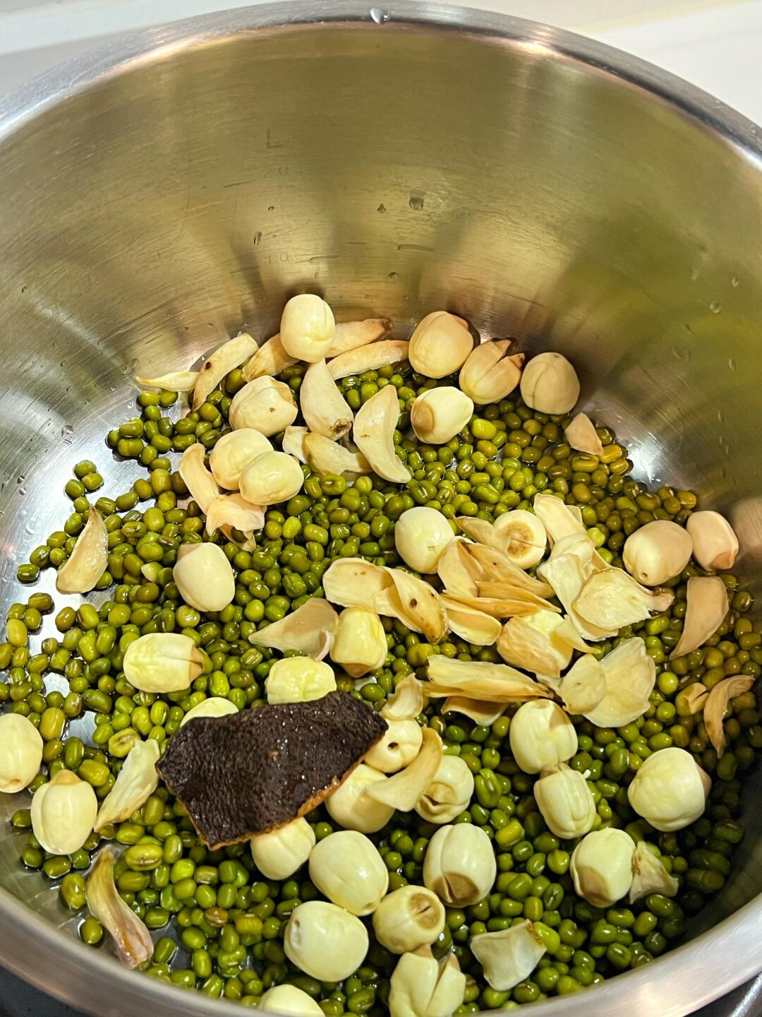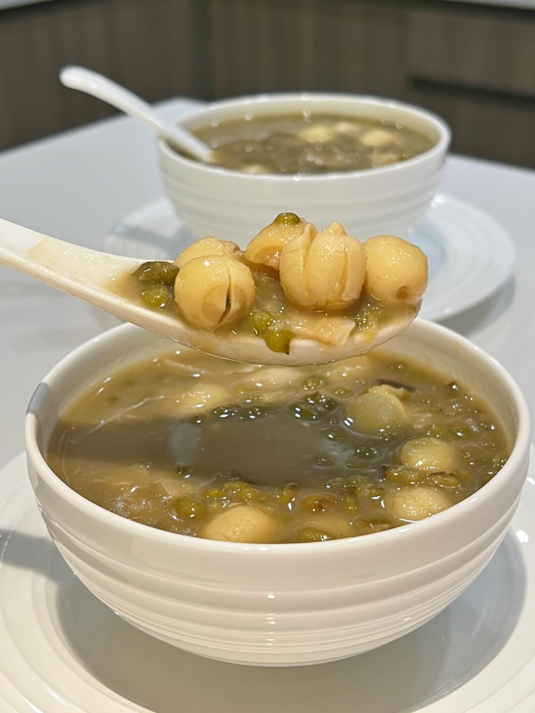 🌿入秋必备糖水!莲子百合绿豆沙轻松赶走秋燥~ 秋风起,皮肤和喉咙都干干的😣 赶紧给自己安排了一碗莲子百合绿豆沙✨ 真的太适合这个季节了! 绿豆清热解毒,莲子养心安神,百合润肺,一碗下肚整个人都舒服多了~ 🧑🍳食材: 1️⃣绿豆120g 2️⃣莲子10g 3️⃣百合10g 4️⃣陈皮一瓣 5️⃣冰糖适量 🥣做法: 1️⃣绿豆,莲子,百合洗净后浸泡1小时。 2️⃣将所有食材放进锅内,加入1200毫升清水,大火煮开后,小火煲30分钟,加冰糖煮至融化即可。